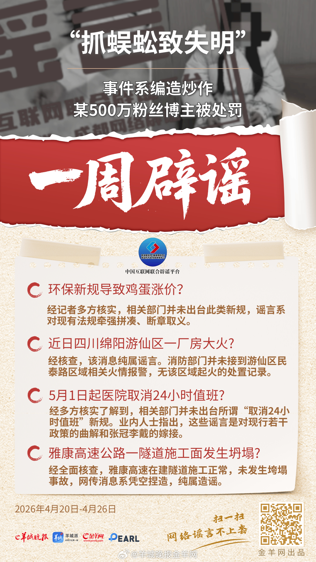 #一周辟谣##照谣镜# 更多精彩报道,请扫码关注羊晚全媒体报道! #特朗普因安全原因离开白宫晚宴##东方甄选主播离职原因##榴莲已经20多元一斤了##16岁高中生或发现侵华日军新罪证#