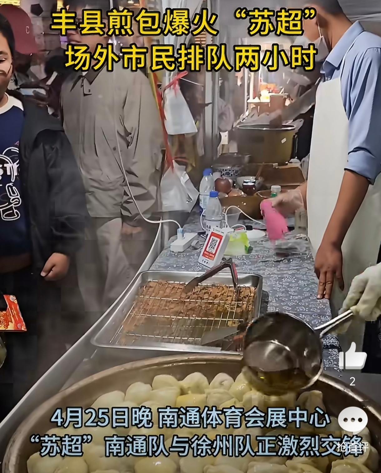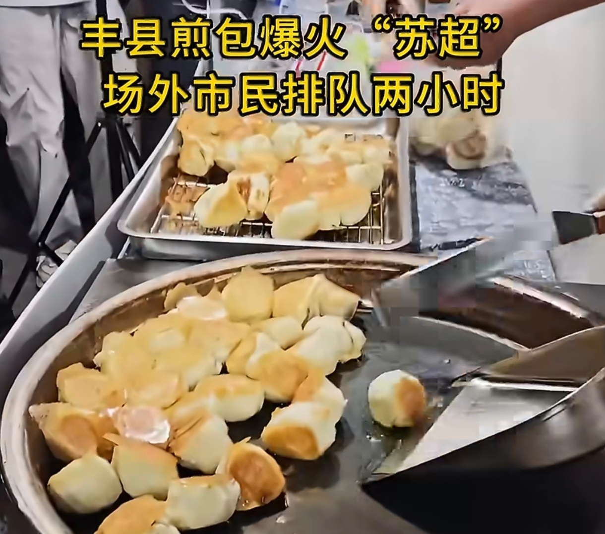 丰县煎包爆火苏超场外谁能想到,苏超场外的“顶流”不是球星,而是丰县煎包 。1元1个的平价美味,在赛场市集排起长龙,摊主连轴制作仍供不应求 。这背后是体育流量对市井经济的强效赋能——赛事聚人气,美食聚人心,把观赛热度转化为消费活力。苏超带火的不只是一场球,更是接地气、有温度的城市夜经济。