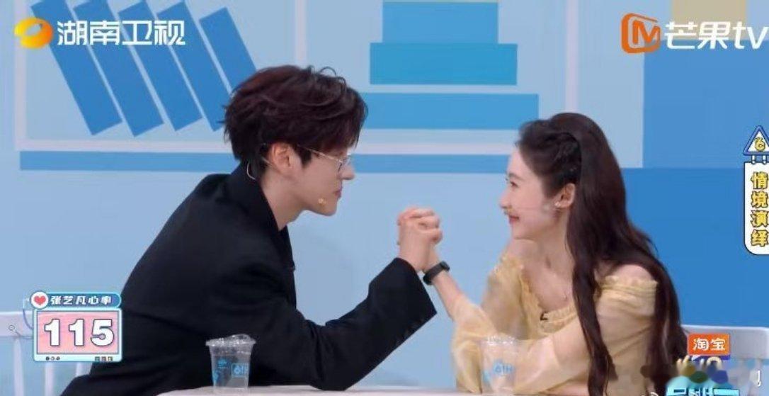 魏哲鸣张艺凡心动挑战被魏哲鸣十指紧扣还一直盯着,谁会不心动啊~张艺凡心跳直达135,谁能扛得住这个魅魔张艺凡被魏哲鸣怼脸心率直飙135