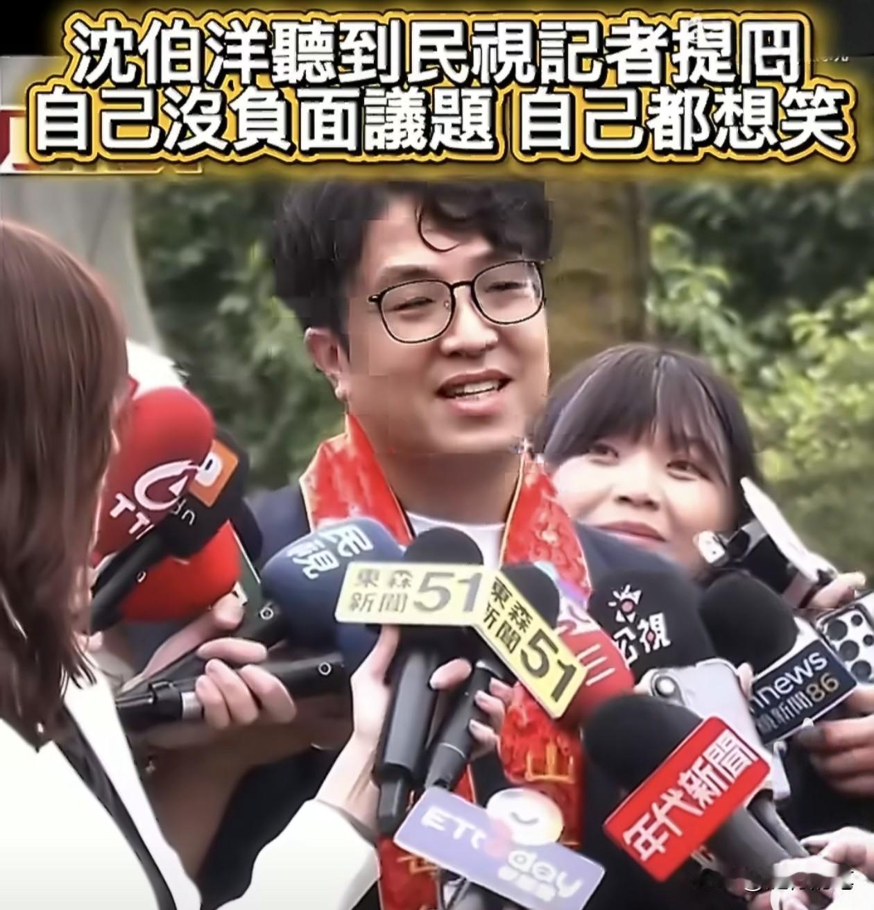 沈伯洋竞选台北市长,蒋万安会很难打?连沈伯洋自己都笑了。 在25日的台北松山慈惠堂2026母娘文化季,沈伯洋以全新造型现身,被认为这是沈伯洋竞选台北市长的“起手式”之一。 也因此,沈伯洋活动期间被一堆记者团团围住采访,有意思的是一绿媒记者居然向沈伯洋问道“有蓝营议员表示,如果您竞选台北市长,选战会很难打,因为您没有什么负面议题可以攻击。” 不知这位绿媒记者是无中生有还是想刻意吹捧沈伯洋,在大众面前问出这种弱智问题,这明显不是在帮沈伯洋,而是让沈伯洋在镜头面前出丑。 果然,面对这个对自己吹捧的问题,沈伯洋自己都不好意思了,尴尬的笑着重复说“我没有什么负面议题?,这个喔…这个”显然沈伯洋自己都不相信自己没有负面议题,沈伯洋的负面议题可太多了,连站在沈伯洋后面的女记者都忍不住笑了。 这些绿媒记者帮倒忙,居然这么制造话题硬夸,让沈伯洋在公开场合都语塞了,沈伯洋“黑熊头子”的绰号已经在岛内人尽皆知了,形象能够好到哪里去?故意说沈伯洋没有负面议题,那不是睁眼说瞎话吗?看到沈伯洋这么不自信的样子,还没宣布参选就已经失败了。