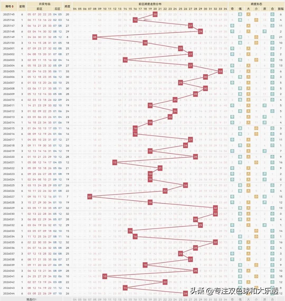 大乐透26045期: 前区2码:18.29 后区2码:1+9 前几天选的前区比较拉胯,上期044期停了一期,看看停了一期后会不会有所不同。本期26045期前区以走势图看,18和29都不错,所以就选了这俩。 后区和值可能在中区位置,以走势看,9不错,就来个1+9吧!毕竟奇奇组合好久没出了,也该来了吧?