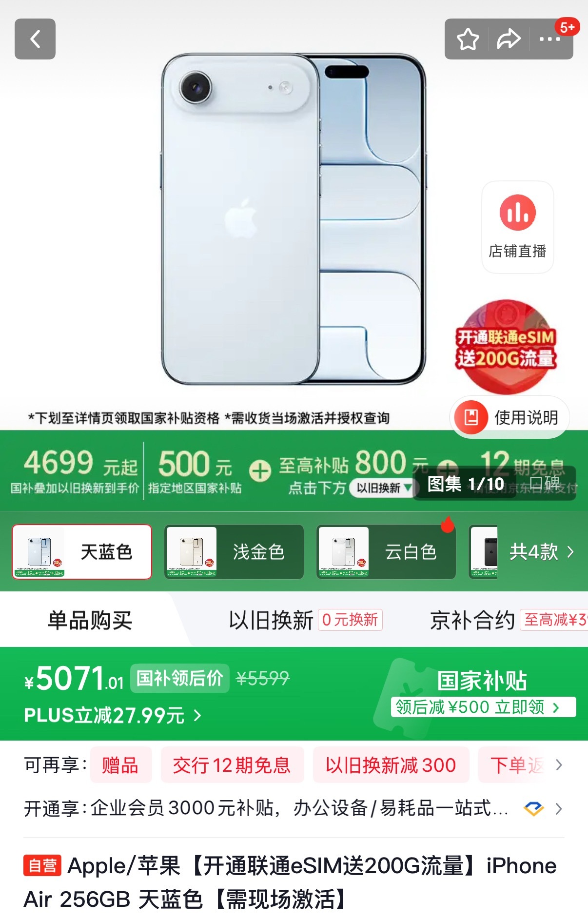 iphoneair现在才5000哎果然小众需求在国内不好卖