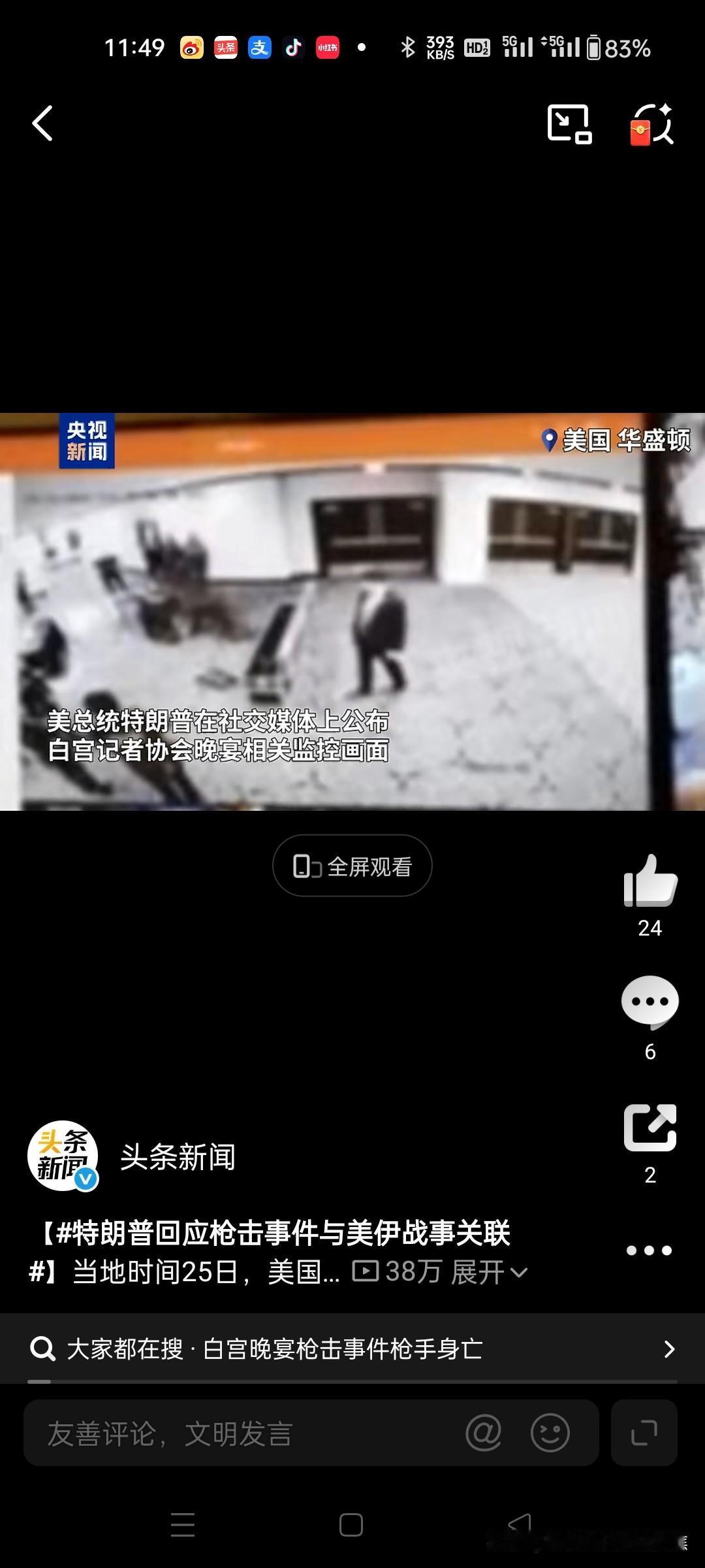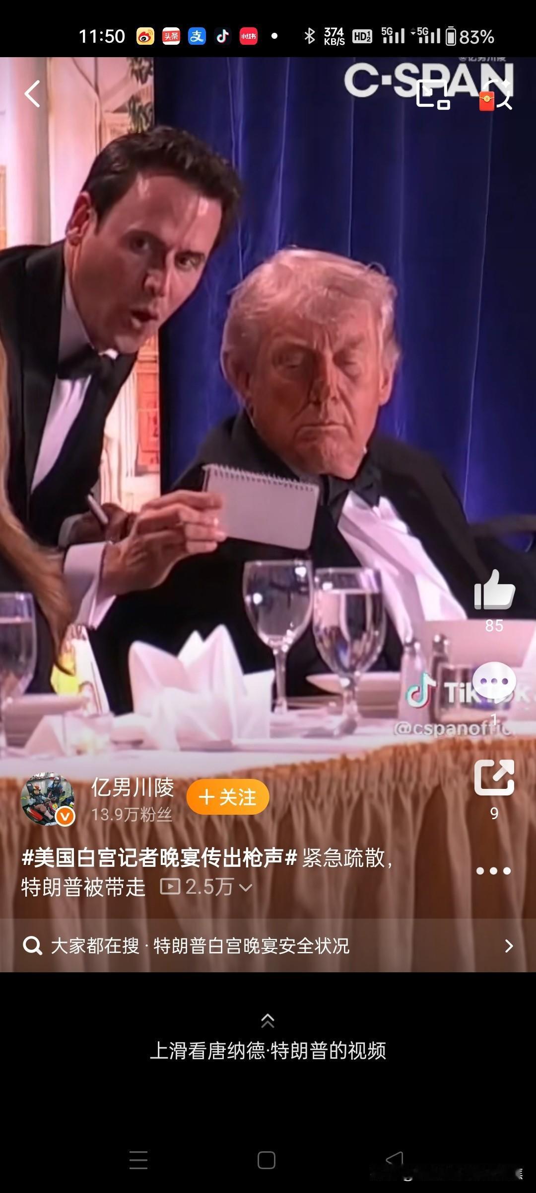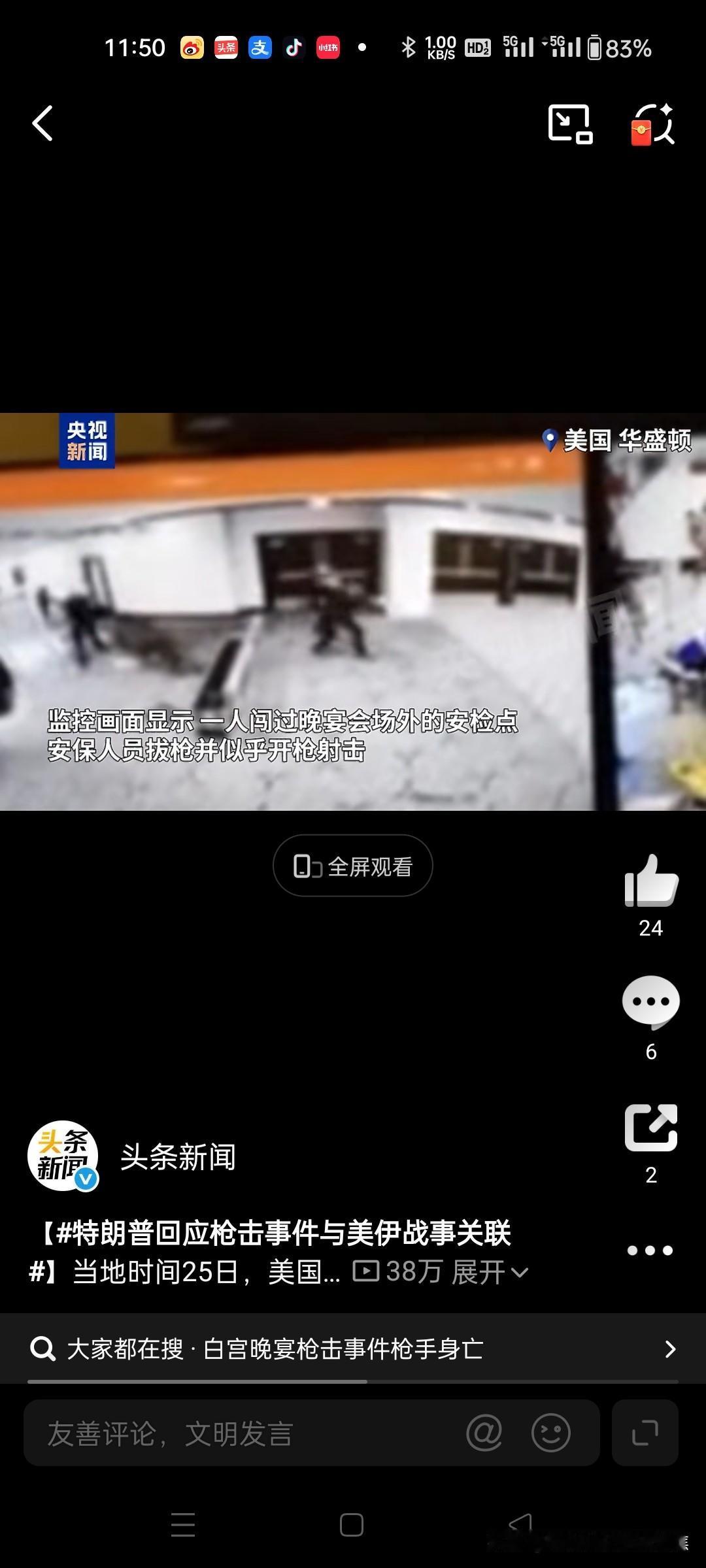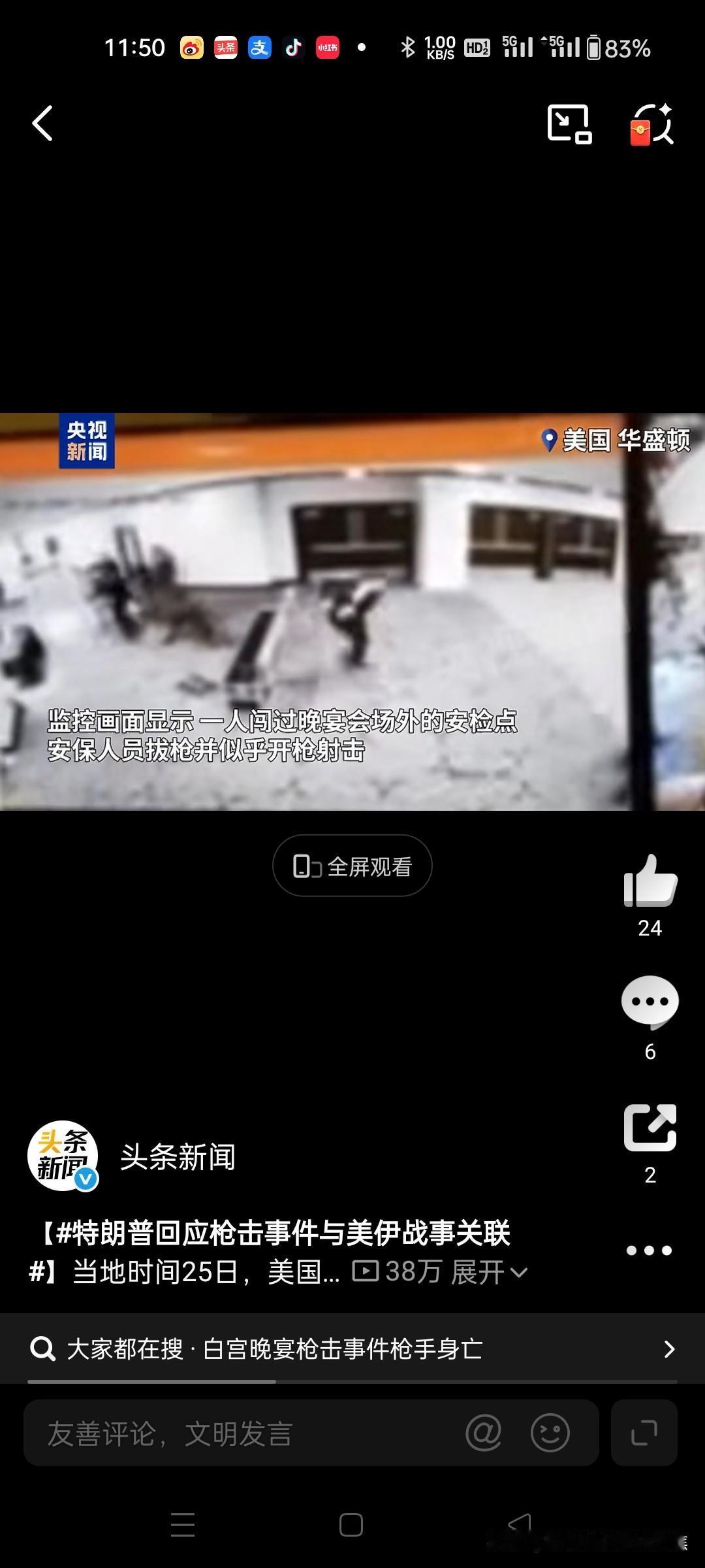 惊险一幕!特朗普再遇刺杀枪击 特朗普否认与伊朗有关 2026年4月25日,美国总统特朗普在白宫记者协会晚宴现场遭遇枪击。特勤人员迅速行动,掩护他撤离现场,枪手被当场击毙。随后,特朗普亲自否认该事件与伊朗局势有关。 事件经过与紧急处置 当地时间2026年4月25日,白宫记者协会晚宴现场突发枪击。巨响传来,多名特勤局特工迅速冲向特朗普所在之处,形成保护圈,护送他安全撤离。官方通报称,枪手在与执法人员交火时被击毙,事件未造成特朗普及其他高级官员受伤。 枪手身份与动机调查 执法部门确认,嫌疑人为31岁的加利福尼亚州男子科尔·托马斯·艾伦。初步调查显示,他使用霰弹枪向特工射击,作案动机仍在调查中。特朗普在事后发布会上称,该事件疑似“独狼式袭击”,联邦调查局(FBI)也倾向此判断。 特朗普公开回应伊朗关联猜测 针对舆论认为事件与美伊战事有关的猜测,特朗普在4月25日的新闻发布会上明确否认:“我不这么认为。”他强调,此事件不会影响其对伊朗政策的推进。 历史背景与后续影响 此次事件发生地点与1981年里根总统遇刺案为同一酒店,凸显美国总统安保始终面临高风险。尽管事件引发短暂混乱,特朗普通过社交媒体肯定了执法部门“迅速而勇敢”的行动,白宫及竞选活动未受影响。 美国枪击案 特朗普争议事件 特朗普发难 川普特朗普 特朗普外交突袭 特朗普碰壁 特朗普困局 特朗普川普