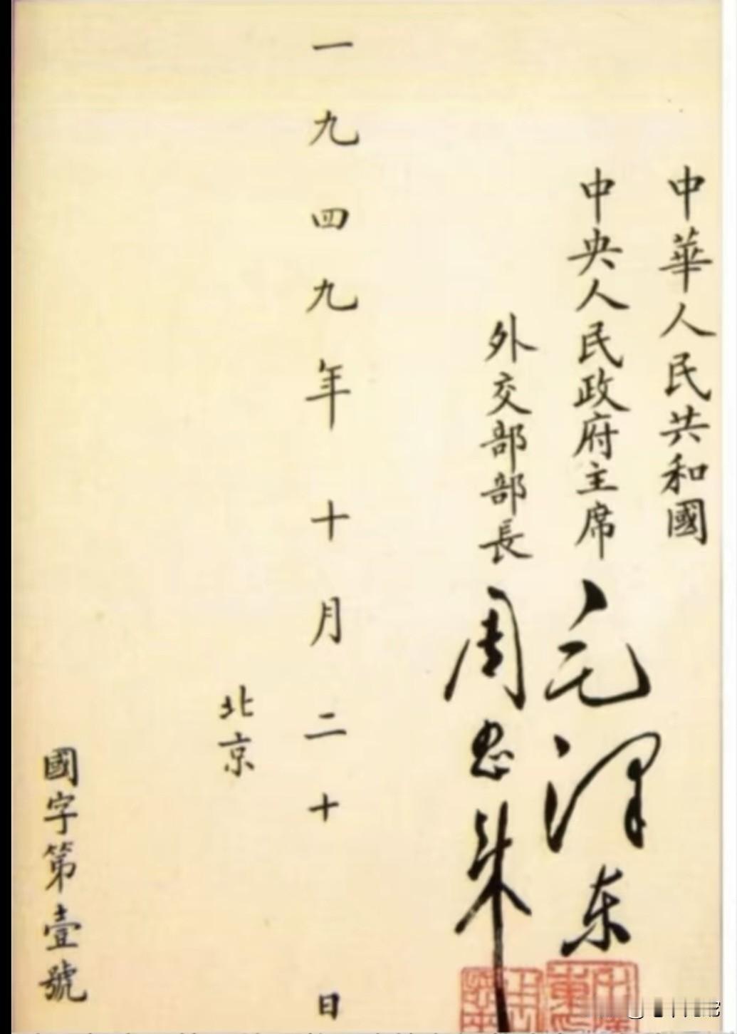 新中国的第一份国书,这签名超过书法家,简直太帅了!