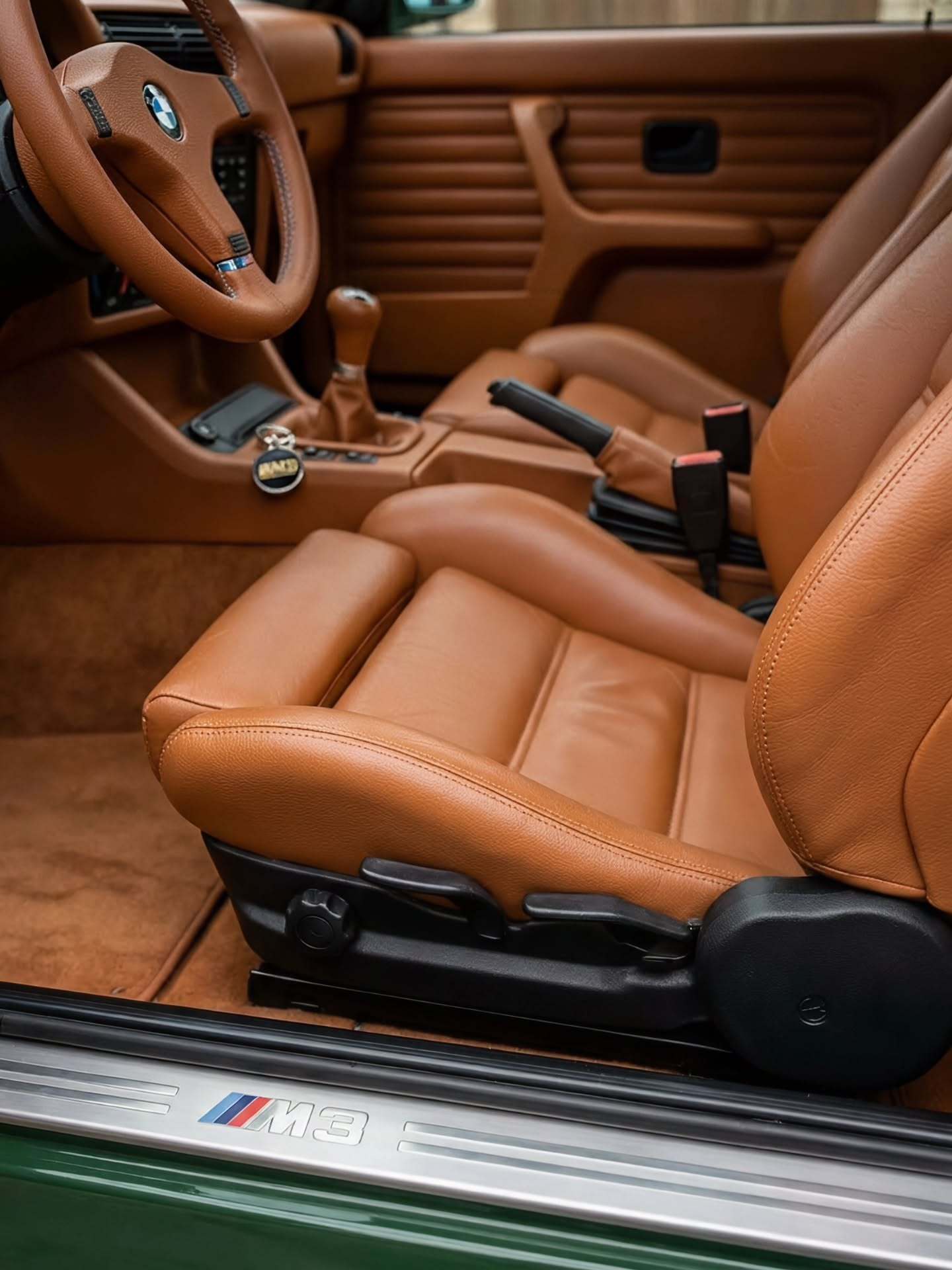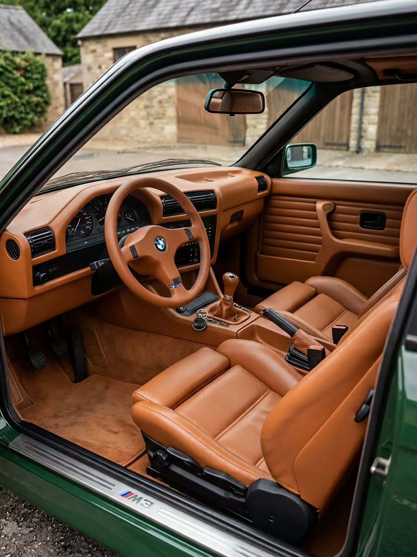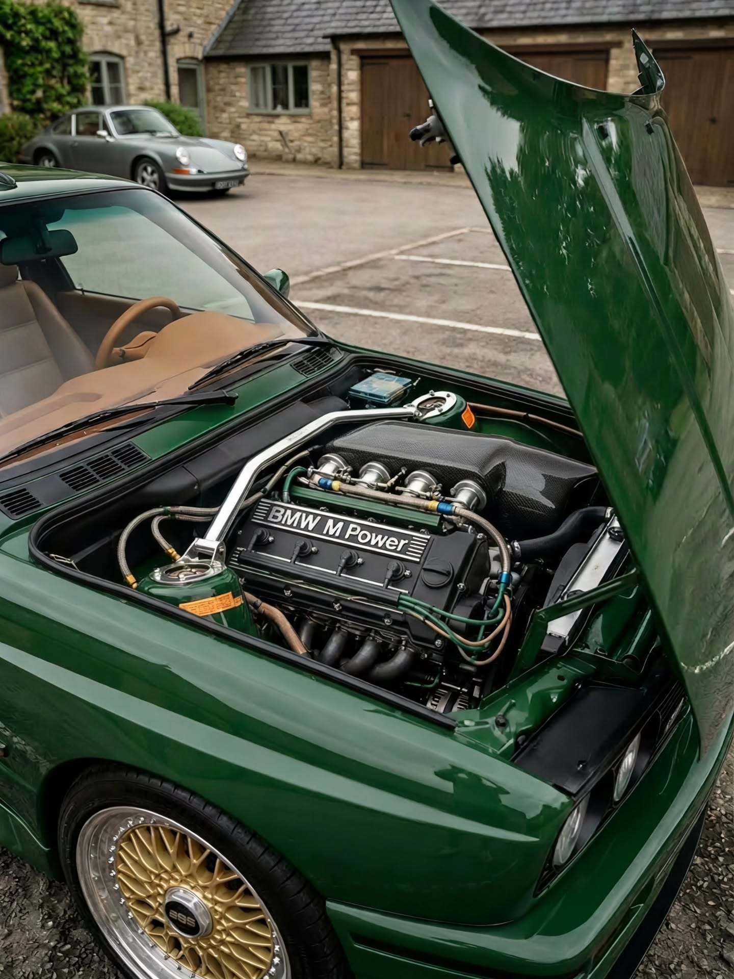 British Racing Green大不列颠赛车绿低调深邃,配经典的金色网状BBSRS,这台E30 M3完成了从赛道机器到绅士座驾的华丽蜕变。Saddle Brown鞍褐色皮革铺满座舱,让人欲望大动的手动挡杆,指尖触碰间,全是80年代的黄金岁月。这种纯粹的机械感,是任何大屏幕都无法模拟的情绪价值。老车这样改,是你喜欢的Style吗?bmwsky宝马M3宝马e30bmwclassic