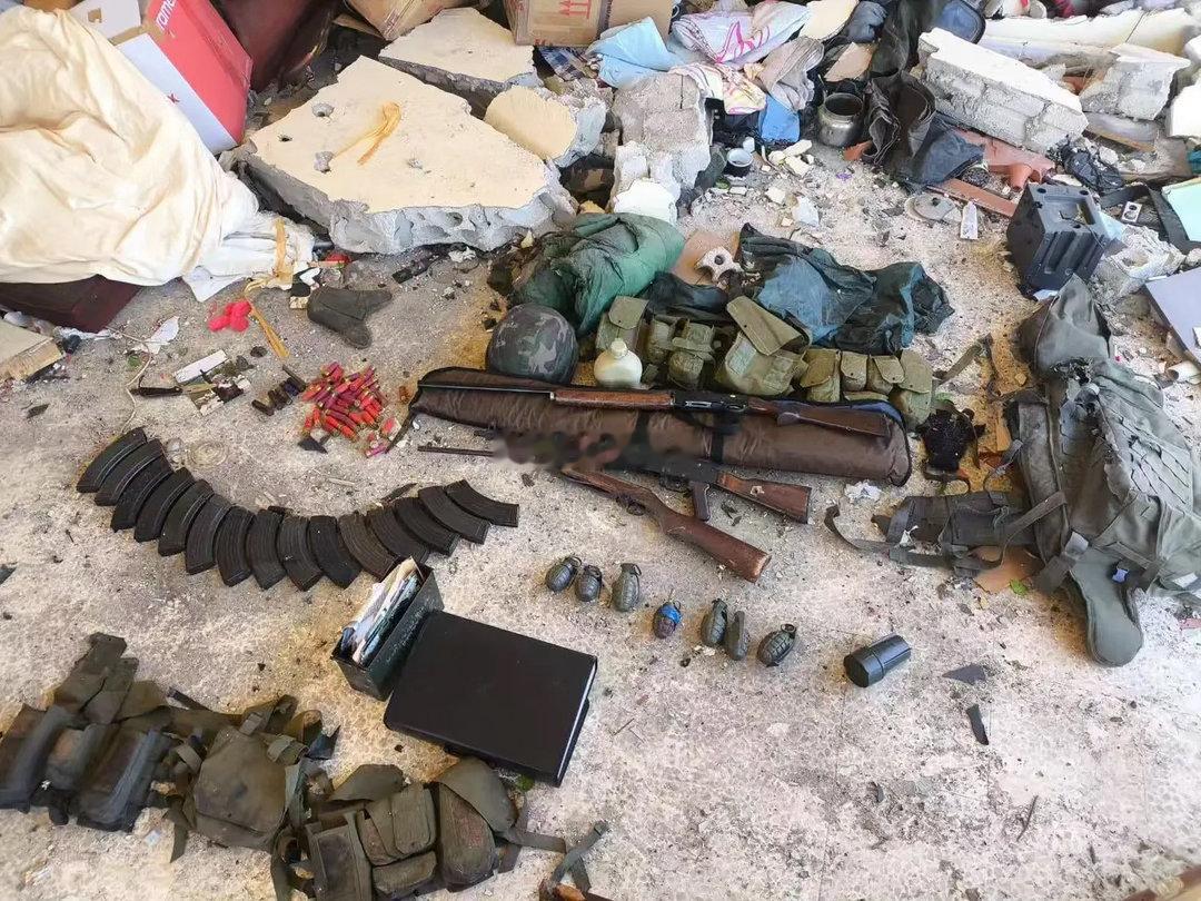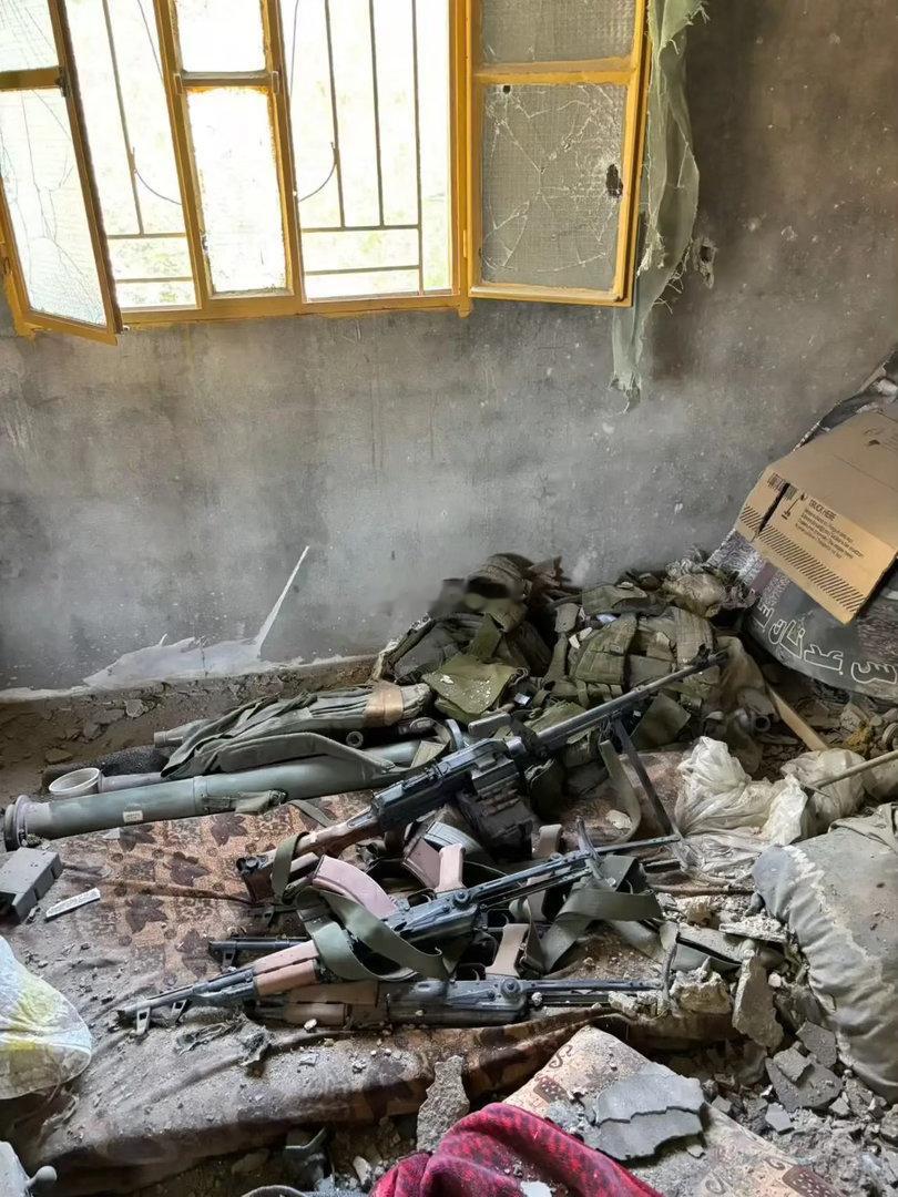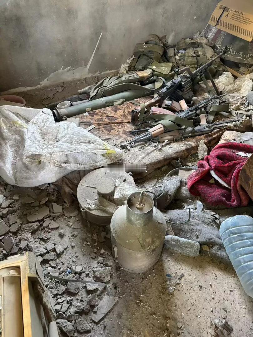 以色列军队在黎巴嫩南部搜索,到处都是黎巴嫩真主党丢弃的武器装备。以军在一个据点发现:RPK/RPK-74轻机枪(弹鼓供弹)、PK系列通用机枪(三脚架、弹链供弹)、SVD 7.62毫米狙击步枪、RPG-18一次性反坦克火箭筒、RPG-7火箭筒及弹药、SKS半自动步枪。 还可以看到AKM/AK-74突击步枪——有木质护木的AKM,也有塑料护木的现代化改进型AK-74。 甚至还有俄罗斯生产的新型9M133-1“短号”反坦克导弹、60毫米迫击炮弹药及配套弹药筒、MON系列定向反步兵地雷、PMN型防步兵地雷、战术背心、背包和迷彩头盔等。 从整个场面分析,这不是零星的武器装备丢弃,而是一个完整的真主党战斗小分队的全部装备和弹药。 黎巴嫩真主党打游击战,很喜欢把武器弹药分散隐藏在村镇民房里。但没想到这一次失败太快,人员在最后时刻都撤离了,很多分散隐藏在各民房、准备打游击战的武器弹药却都被缴获了。