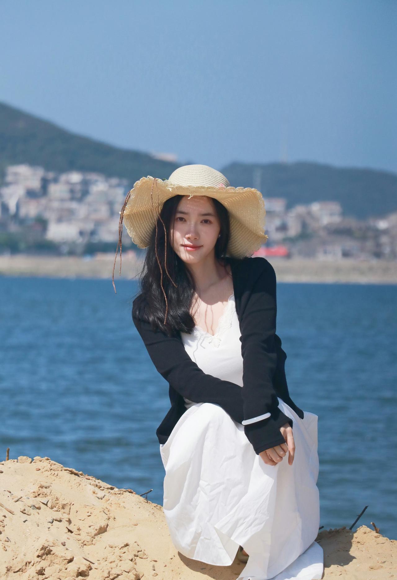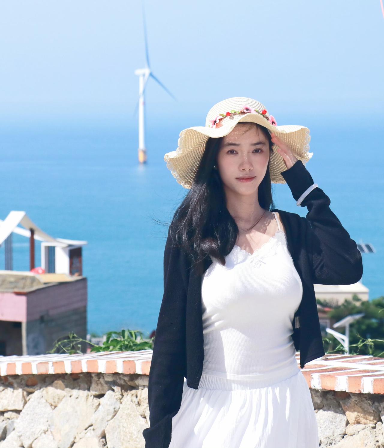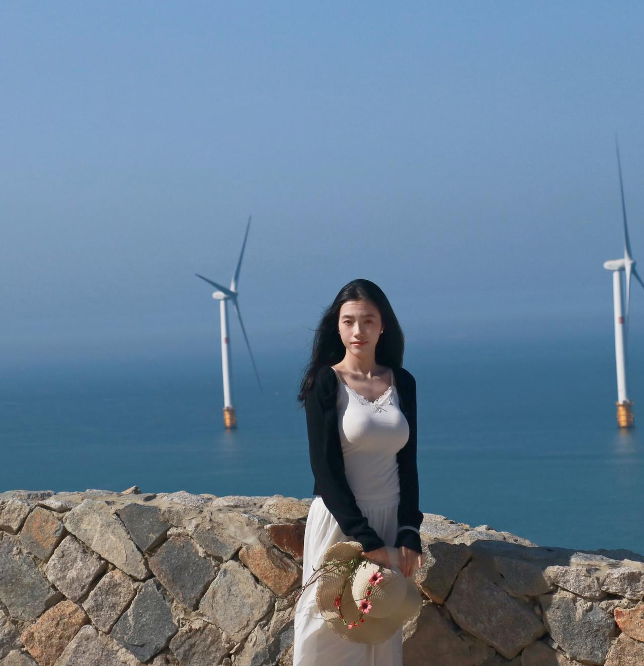 海风漫过发梢,蓝天与大海铺成干净底色,远处风车缓缓转动。 一顶草帽,一身温柔穿搭,把海边的慵懒与惬意尽数收下,阳光正好,浪漫也正好。