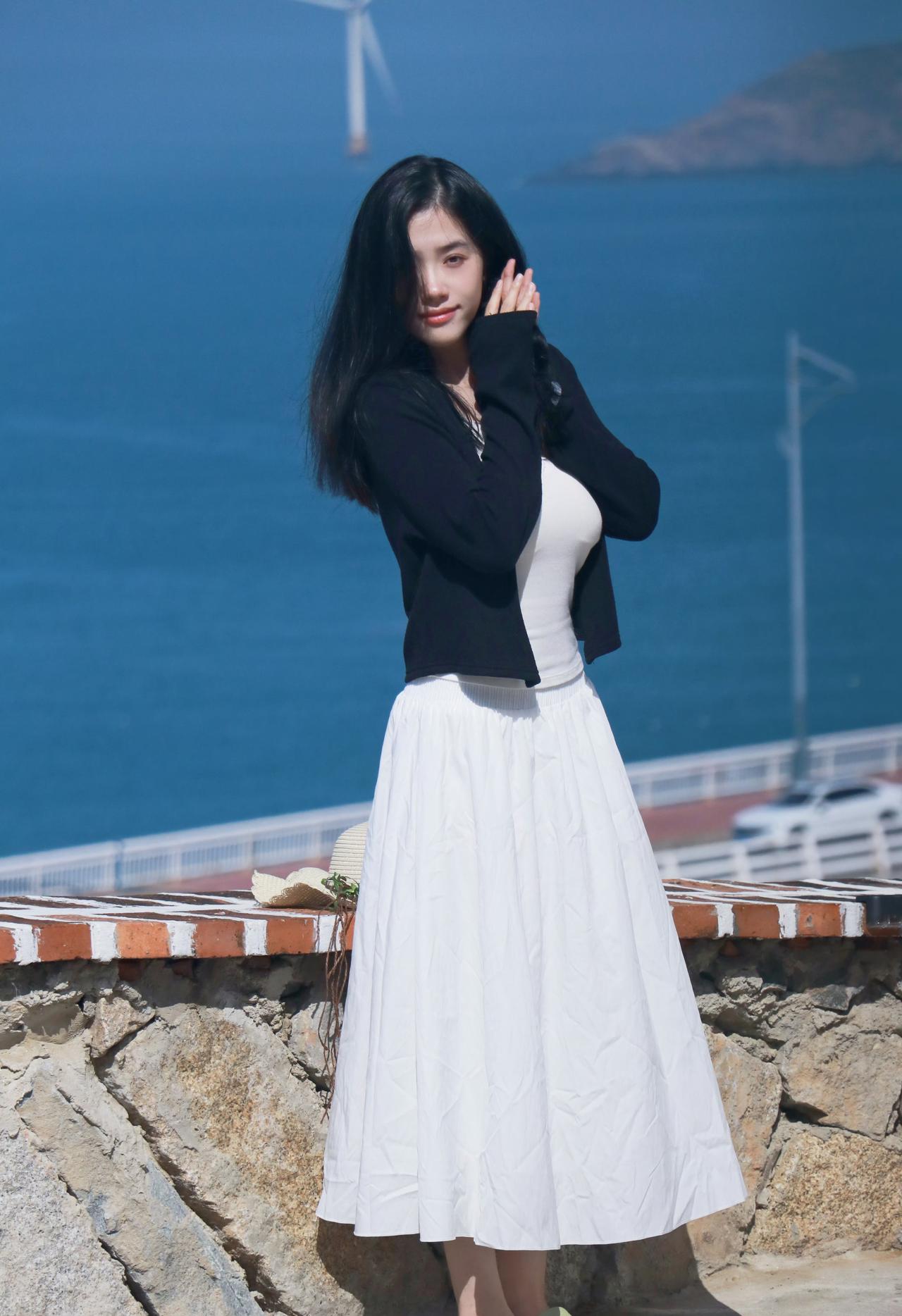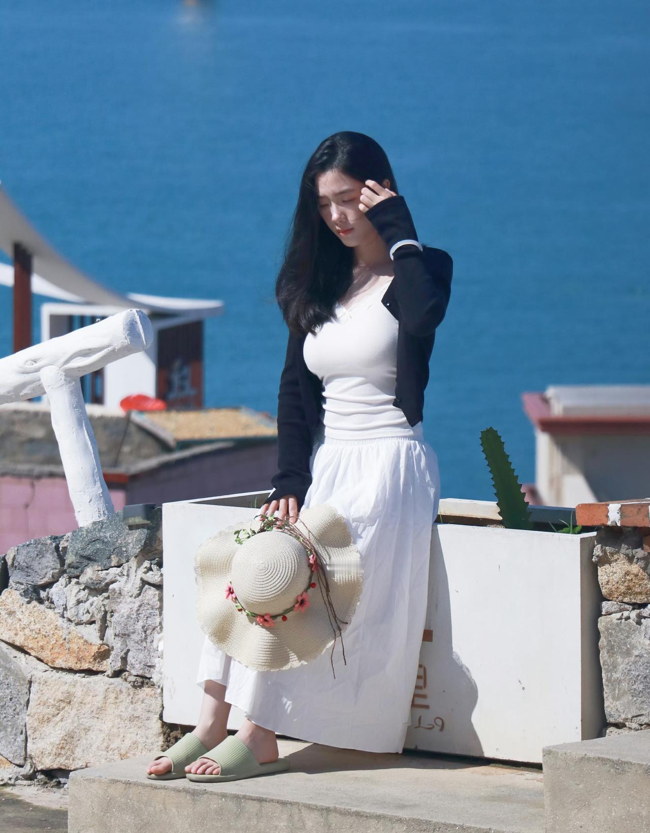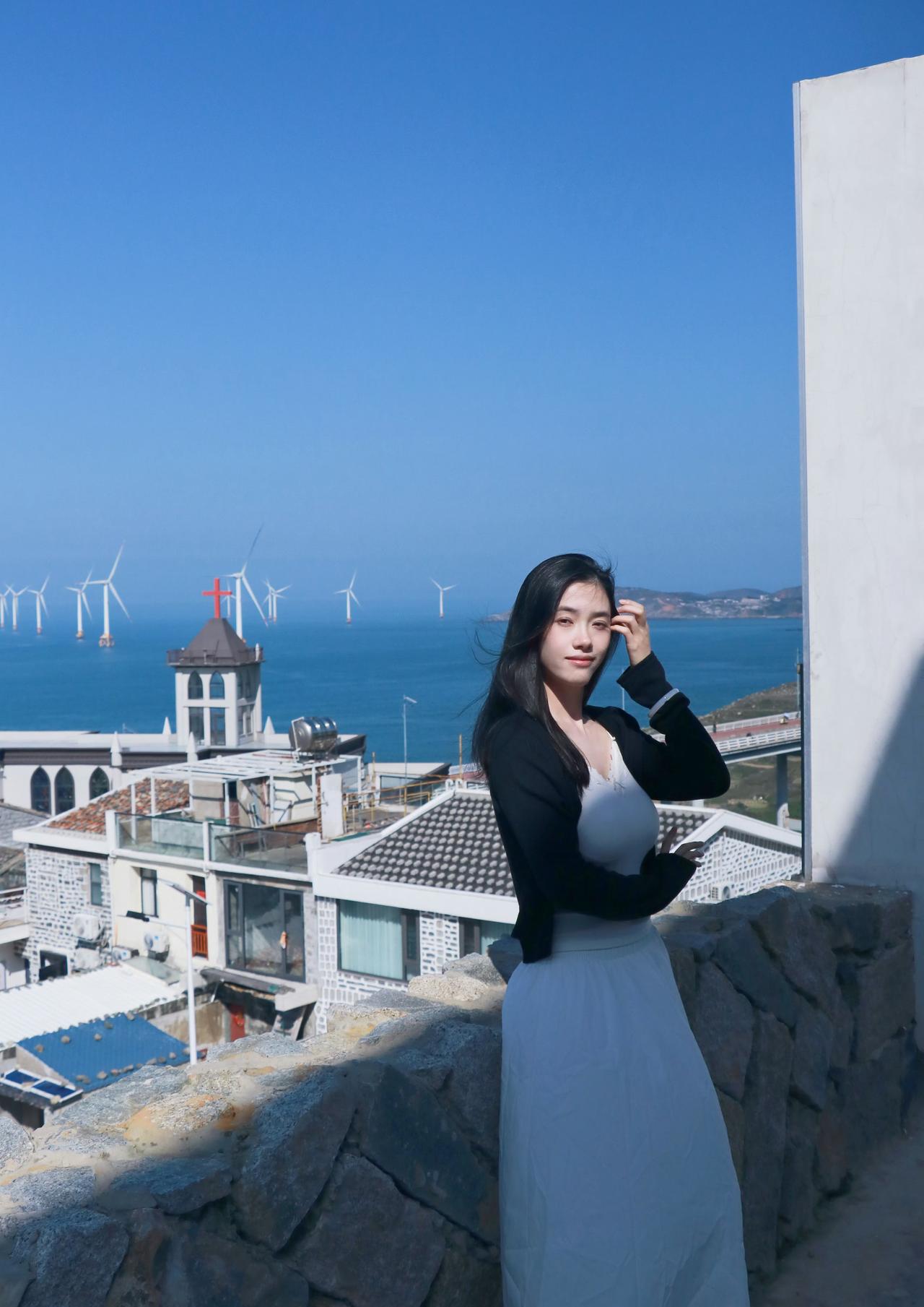 海风漫过发梢,蓝天与大海铺成干净底色,远处风车缓缓转动。 一顶草帽,一身温柔穿搭,把海边的慵懒与惬意尽数收下,阳光正好,浪漫也正好。