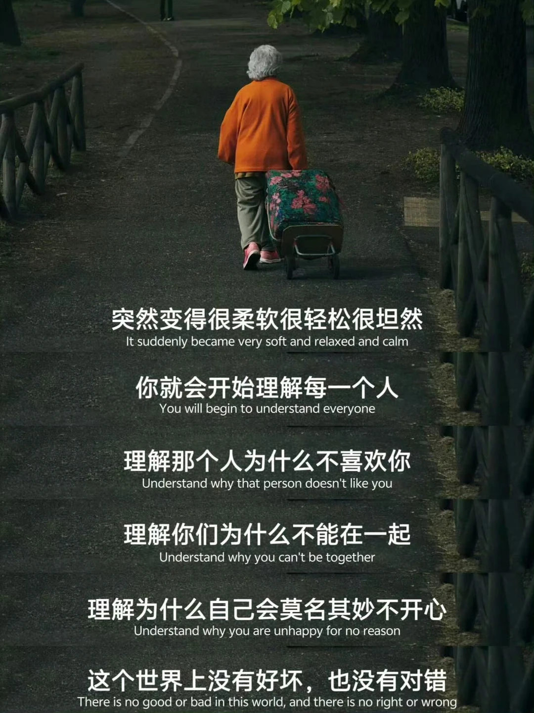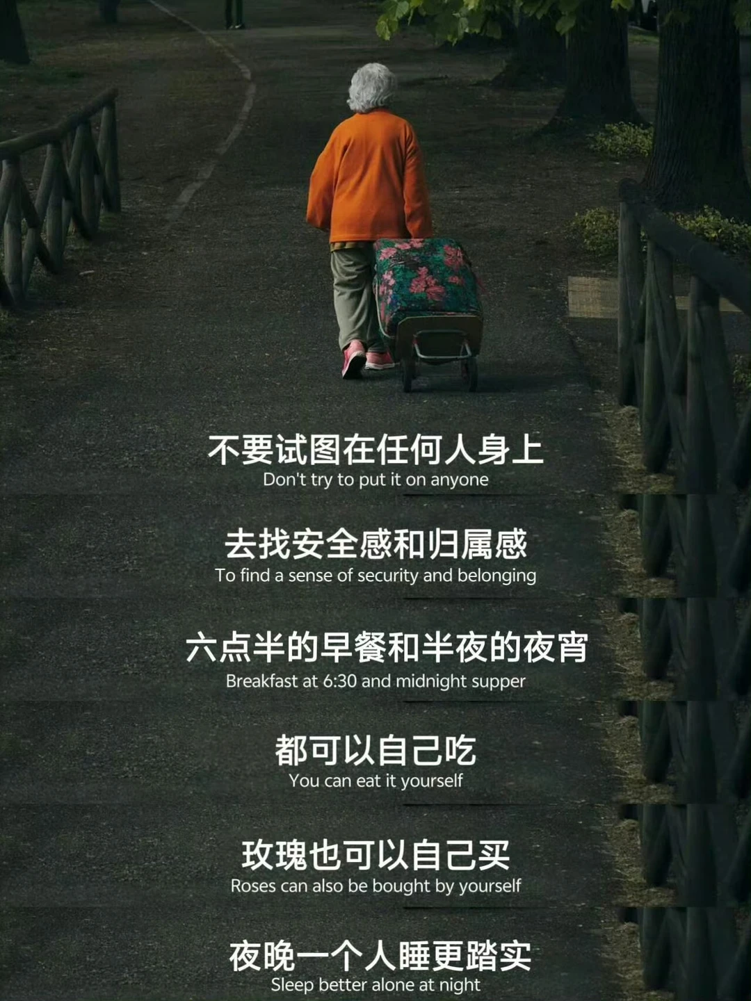 大彻大悟的一段话:“一定要记着,人老了以后,不会再有谁跟你亲近了,因为你已经没