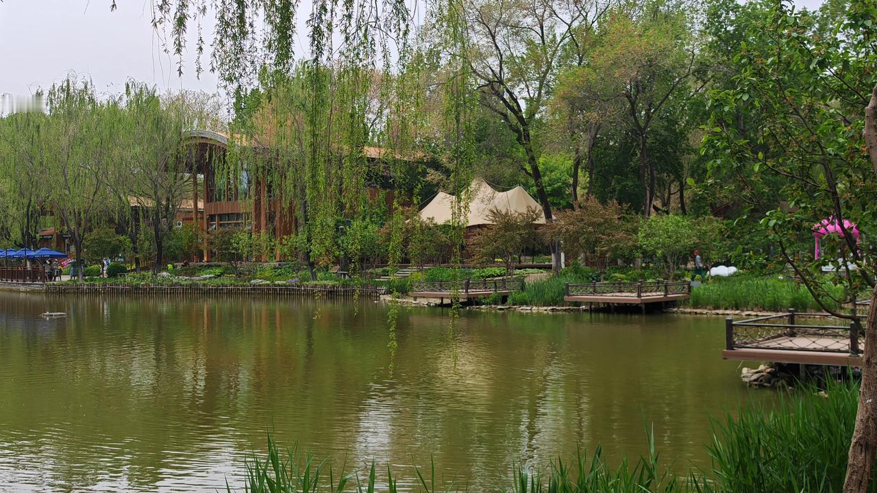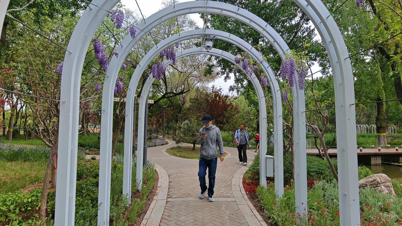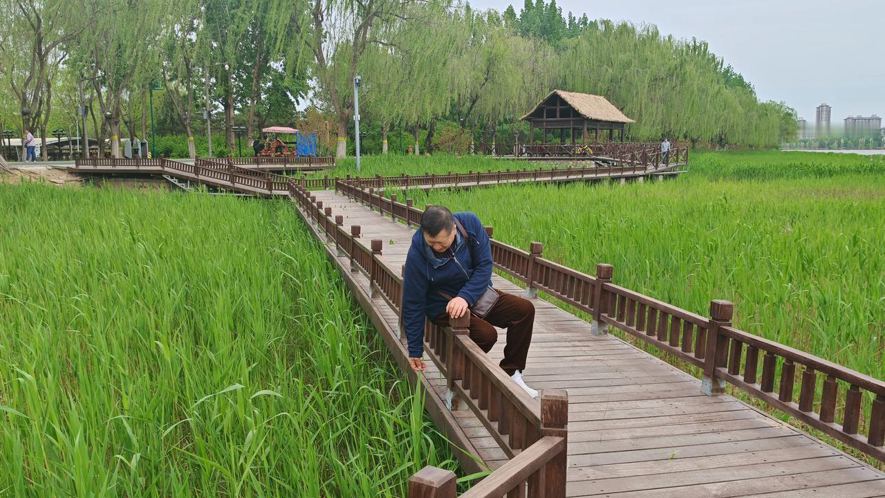 此时,正行走在北京大运河公园。早晨天有点阴 ,风也稍大,但兴致不减。主要这里的景色真是美妙绝伦。昨天刚从两大皇家园林——北京颐和园和圆明园回来。感觉这里的景色一点不输它们。这里沿着长长的运河分几个区域,各有其特点。漫游尽赏其乐无穷。 京华春到景如绸,云水悠悠绕画楼。 芦苇新抽青剑立,栈桥曲卧碧波浮。 樱花堆雪香风动,岸柳垂丝绿意流。 此境恍疑仙境里,闲行步步醉心头。 行走其间,我也在想,孩子们,一定要好好学习,考上一个好大学,长大争取到北京发展。北京资源多,景色美,发展空间也大。