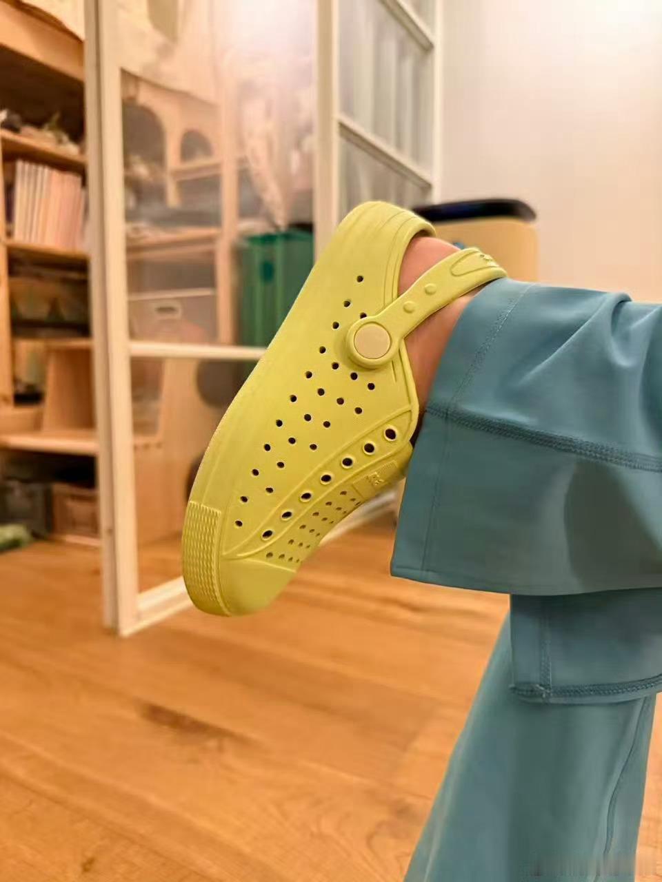 我喜欢洞洞鞋,很大原因是因为它好搭,配什么衣服都行,出门洗澡能当拖鞋穿。