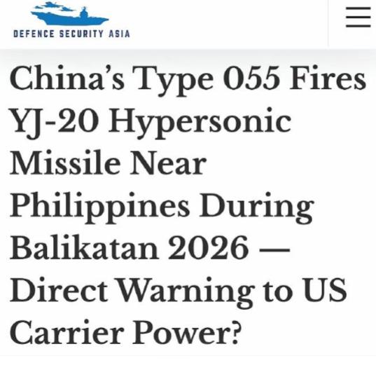 外媒:中国 055 型驱逐舰在菲律宾附近试射 YJ-20 高超音速导弹。 据亚洲防务安全网站2026 年 4 月 25 日报道:在中国航母辽宁舰协同作战期间,一艘 055 型驱逐舰在菲律宾附近再次试射 YJ-20 高超音速反舰导弹(鹰击 - 20),此举绝非例行海军演练。 辽宁舰代表的是远海空中掩护和舰队体系,055代表的是大型水面舰艇的远程打击、防空反导和指挥中枢能力。 过去很多人看航母,只盯着舰载机数量,现在真正懂行的人看的是整个编队能不能发现目标、锁定目标、压制目标、打击目标。 航母不是单独出去“摆造型”,055也不是单舰出去“亮肌肉”,两者放在一起,才是体系作战的骨架。 055的关键价值,就在于它不是传统意义上的护卫舰,而是万吨级综合作战平台,它有112个垂直发射单元,可装载防空、反舰、反潜、对陆打击等多类弹药。 这个级别的军舰进入远海,意义不是“多了一艘船”,而是多了一个移动火力节点。 它能保护航母,也能在必要时自己承担远程打击任务,对方如果只按老思路估算中国海军,那就会低估055给整个编队带来的威慑半径。 YJ-20这个名字更容易引爆讨论,外界普遍把它归入高超音速反舰武器范畴,相关报道多提到它可由055这类大型水面舰艇发射,目标是大型水面舰艇,尤其是航母、两栖攻击舰这类高价值目标。 高超音速武器的难点,不只在“飞得快”,更在末段突防、机动变轨、信息链支撑。 对海上目标打击要解决发现、跟踪、更新目标坐标这一整套链条,单靠一枚导弹本身不够,背后还要有卫星、无人机、预警机、水面舰艇和岸基体系配合。 这才是这件事的本质:外界盯着的是“有没有发射”,真正该看的却是“有没有形成体系”。 美菲日军演摆的是一张网,试图把岛链、基地、导弹、舰机连接起来,中国展示的也是一张网,航母负责扩大空中感知和掩护,055负责远程火力投送,岸基与海空天力量提供支撑。 两张网在西太平洋对上,拼的不是口号,而是谁的侦察更快,谁的链路更稳,谁的火力覆盖更远,谁的承压能力更强。 菲律宾在这盘局里很特殊。它的位置太敏感,北接巴士海峡,西临南海,东面通向菲律宾海。 美国拉着菲律宾扩大军演,表面看是训练,深层看是把关键通道军事化,日本这次参与度提高,也不是简单“凑热闹”。 日本过去长期以观察员身份参加,如今更深度进入演训,本身就说明地区安全结构正在被重新包装,美国想把盟友都接进一套作战剧本里,让前沿岛链变成可用支点。 可问题也在这,军演规模越大,越能说明对方缺安全感,真正有把握的人,不会天天把阵势摆到别人家门口。 美国在亚太要维持存在感,菲律宾要借外力抬高筹码,日本要趁局势变化扩展军事活动空间,三方各有算盘。 它们能凑在一起,不代表利益完全一致,对中国来说,最稳的应对不是跟着对方情绪起舞,而是把自己的远海能力练出来,把反介入能力摆到关键区域,让对手每一步都要重新计算代价。 这也是055加高超音速反舰武器最有冲击力的地方。它改变了过去“航母靠近才有威慑”的旧逻辑。只要远程探测和打击链条足够成熟,大型水面目标就很难再享受绝对安全距离。 对普通人讲得直白点:对方把航母、舰队、导弹车往前推,中国不是只在岸边喊话,而是有能力把风险圈推回去,你压到门口,我就让你的门口也变成高风险区,这才叫战略平衡。 这次事件的爆点不在一枚导弹,而在中国海军已经从“近海防守”走向“远海控局”,055不是单纯的大船,YJ-20也不是单纯的新弹,它们放在一起,是对海上力量规则的一次改写。 普通人不用被各种参数绕晕,只记住一点:真正的底气,不靠喊得响,而靠别人靠近前会先掂量。