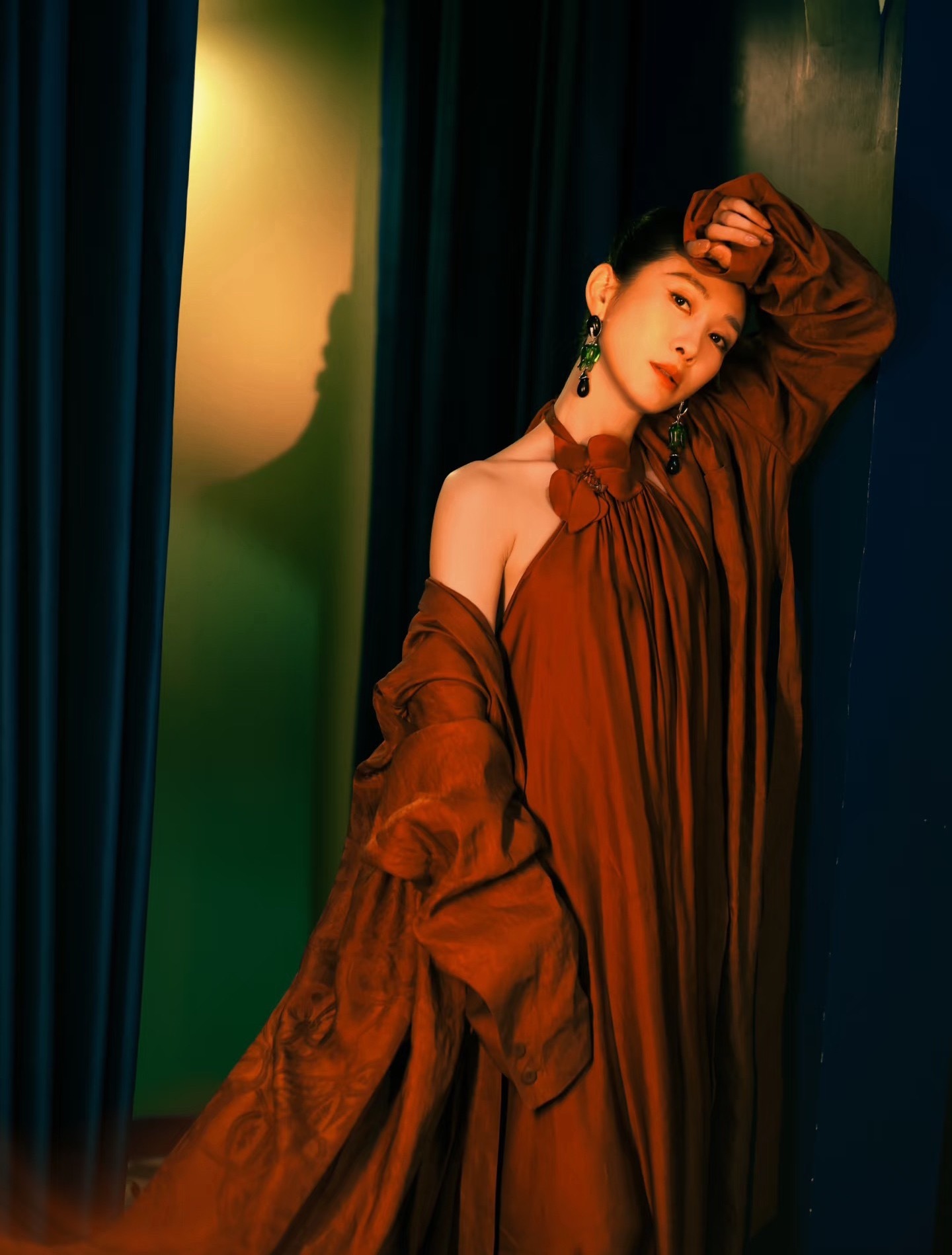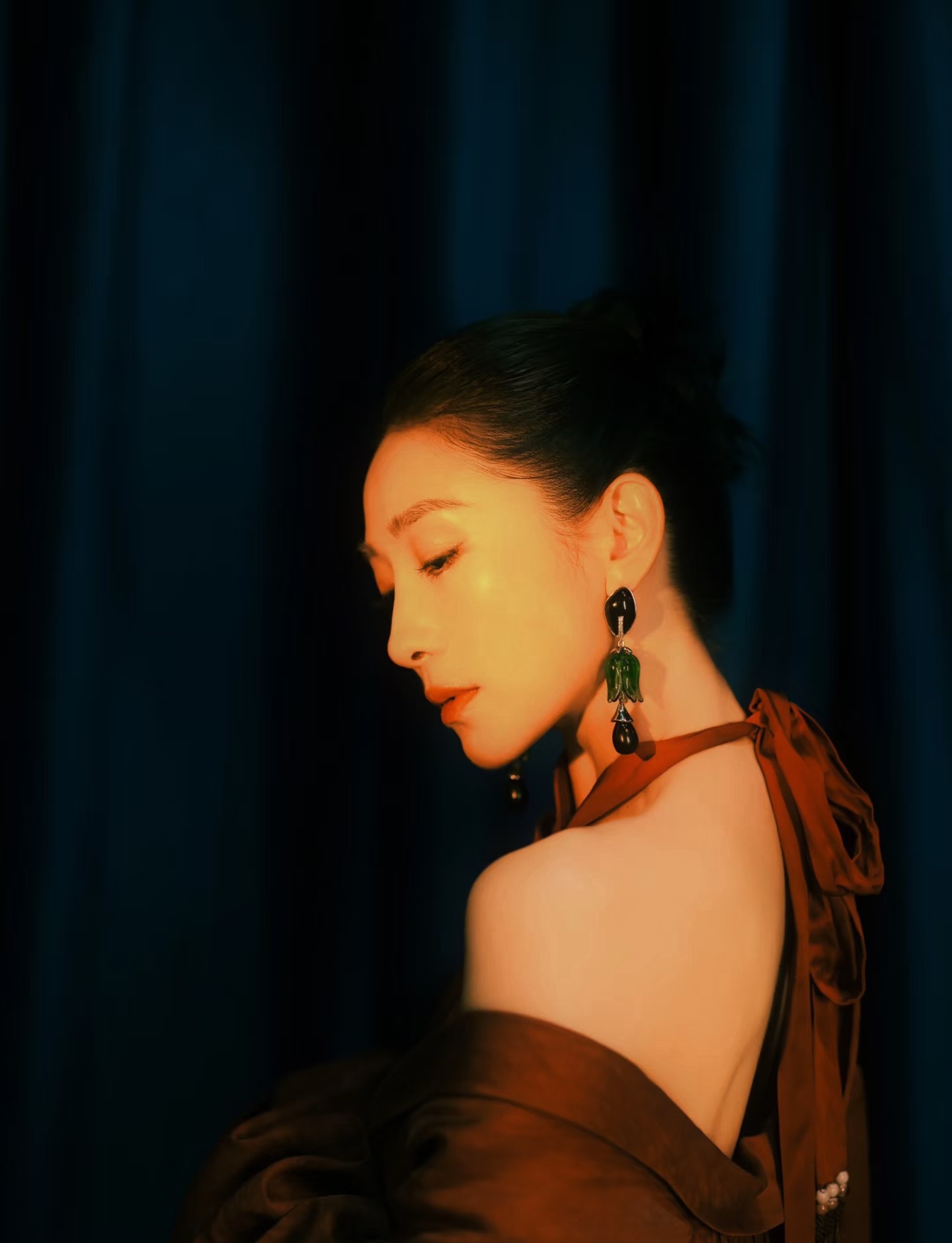 我把陶昕然弄哭了陶昕然盘发➕红色挂脖长裙造型好美,姐感十足!