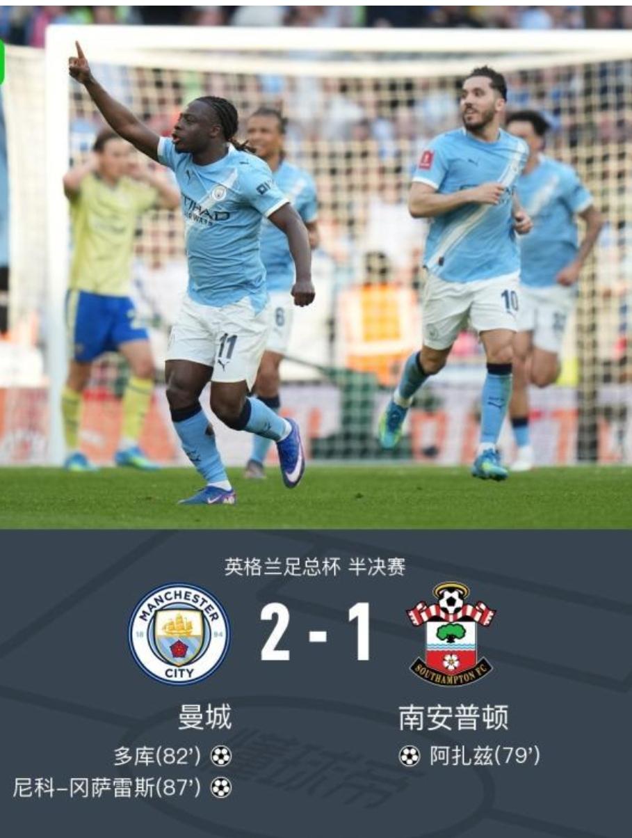 曼城足总杯阵容大轮换,瓜迪奥拉之心,昭然若揭,路人皆知! 足总杯半决赛,瓜迪奥拉轮换了绝大部分主力阵容,2-1逆转圣徒晋级决赛! 瓜迪奥拉为了联赛,这场半决赛依然排出替补阵容应对南安普顿,主力球员只有谢尔基首发!久梳战阵的福登、马尔穆什、赖因德斯、科瓦契奇终于得到了首发机会! 但也许是由于替补心态,过于想证明自己,曼城得势不得分,以至于瓜迪奥拉不得不先后派上多库、奥莱利、哈兰德、B席等主力!但曼城还是在第79分钟被南安普顿偷袭得手! 好在多库折射扳平比分,尼科-冈萨雷斯世界波远射绝杀,曼城有惊无险晋级足总杯决赛! 从瓜迪奥拉的首发可以看出,为了应对英超,他轮休了主力球员! 在阿森纳1-0击败纽卡斯尔之后,阿森纳多赛一轮领先曼城3分回归英超榜首,但阿森纳要分心欧冠,主力球员体能堪忧! 从两队赛程看,5月10日,阿森纳客场对阵保级球队铁锤帮西汉姆联,是对阿森纳最大的考验! 曼城的剩余对手看似无欲无求,但埃弗顿、布伦特福德、伯恩茅斯这三支球队并不好打,这些英超二流球队为打出身价,对强队就打鸡血,不会轻易成全曼城! 所以说,阿森纳英超夺冠的概率依然大于曼城!