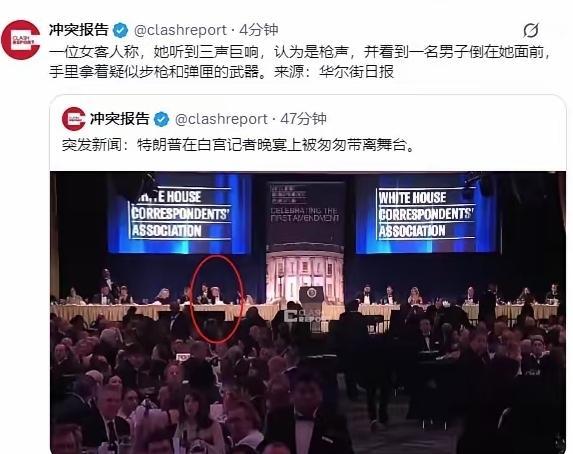 特朗普在保护中离开现场,袭击者被击毙 美国东部时间昨夜,在华盛顿白宫记者晚宴现场,一场突发枪击事件让整个会场陷入片刻混乱。 其间,总统特朗普正坐在主席台前。枪声突然响起,现场画面显示,美国特工第一时间冲上前,将特朗普围住保护,并迅速护送他离开危险区域。 按照现场目击者的回忆,有女宾客听到三声巨响——显而易见是枪声。她还看到,一名男子就在她眼前倒地,手里紧握着疑似步枪和弹匣。 相关报道印证了这一说法,美媒随后证实,此次袭击并未得手。这名枪手试图突破重重安保进入核心区,但刚刚有所行动就被迅速制服并当场击毙。 整个事件发生速度极快。会场原本弥漫着轻松气氛,瞬间就被突如其来的枪声所打破。 安保特工反应敏捷,先是挡在特朗普身前,然后将其带出会场,确保没有进一步伤害。周围宾客被吓得四散奔逃,许多人一时难以分辨状况,直到后来确认枪手已被清除。 这次事故也拉响了美国政要活动安保的警报。尽管白宫记者晚宴历来是高规格、高安全级别的场合,但依然有不测发生,也说明安全防护永远不能掉以轻心。 枪手身份尚未完全公开,动机目前还在调查中。美方安保部门事后连夜排查,避免更多潜在风险隐患。 晚宴地点附近很快聚集了急救人员和警察,警方对现场迅速进行封锁和搜查。 周边居民虽未受到直接影响,但警戒线外还是能感受到紧张气氛。 据几位与会记者描述,那一刻所有人都在猜测发生了什么,直到看到特工带着特朗普离开,会场才稍微恢复冷静。 这一事件也让人们再次关注美国政坛的安全挑战。即便是顶级安保措施下,仍然无法绝对排除突发袭击。 过去类似事件并非孤例,这次的案件提醒社会必须对公共安全保持持续警觉。不幸的是,有人企图用暴力方式制造影响,但被迅速制止。 整个袭击过程结束得很快,枪手未曾造成大规模伤亡。特朗普及其它政要安全撤离,没有受伤。 警方和特工反应及时,阻止了更严重的后果。 目前,相关部门正对枪手背景展开深入调查,而会场秩序也逐步恢复。当天发生的这一幕,将成为美国时政新闻圈热议的焦点。