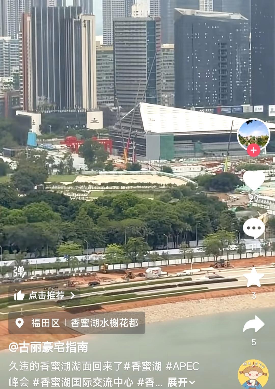 感受一下什么叫深圳速度,这段时间我一直在跟拍深圳新香蜜湖的进度,这里也是2026年APEC会议的举办地。今天刷到一个视频(视频来源见图二),新香密湖已经注水了,新的香蜜湖公园的建设进度真的很快。后面六张图片是我从去年到今年拍摄的一部分图片,能感觉到香蜜湖的变化。APEC会议的主会场深圳香蜜湖国际会议交流中心已经完工,配套酒店也已经建成,现在就等待新香蜜湖的核心景区香蜜湖公园了。我估计再过两个月,这个公园就会全面建成,深圳新的城市会客厅就会展现在大家面前。深圳 旅行