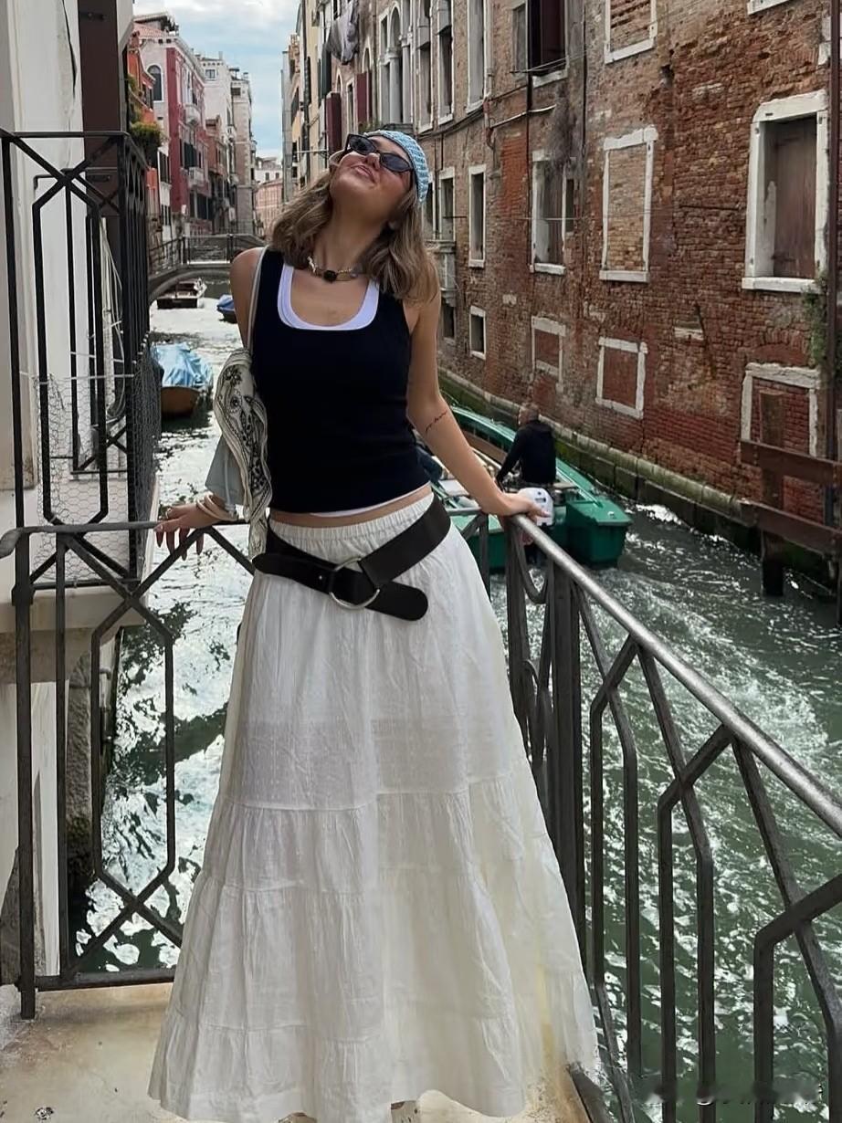 简约而不简单,确实是女神范儿的真谛,一条灰白牛仔裤搭配白色内T!时尚女性气质气