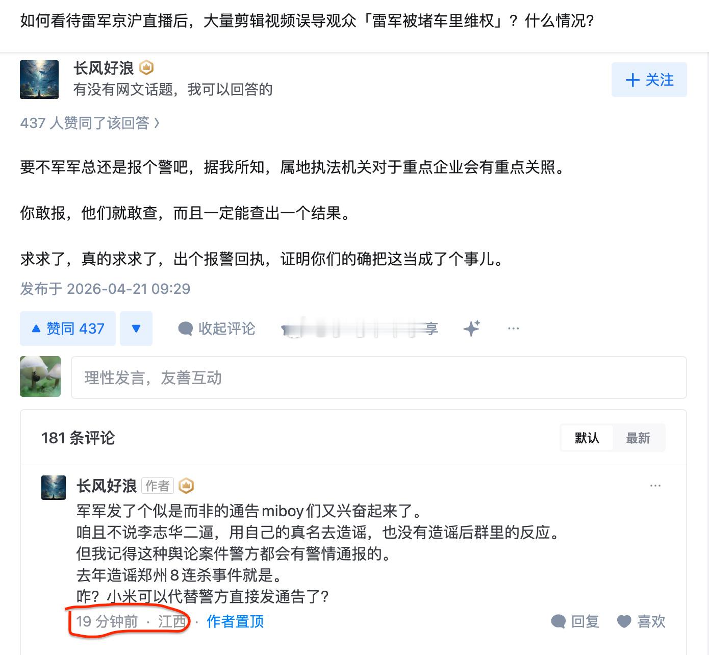 网民造谣雷军被行政拘留10天