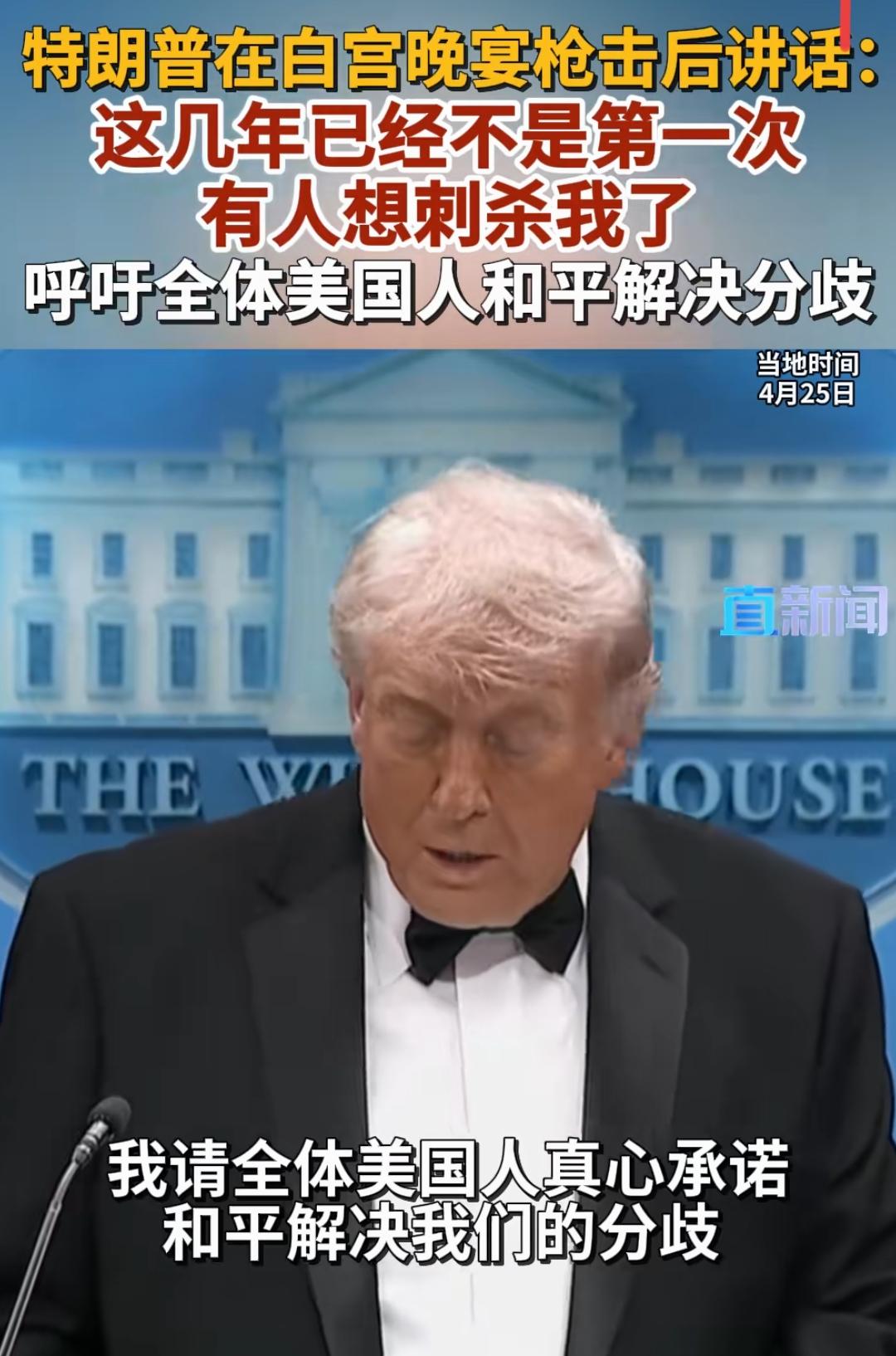 一夜白头! 愁的了,又遇上刺杀,多难受! 可笑的是,他竟然呼吁全美国人要和平解决分歧。 但是,要知道,他自己已经习惯了武力解决问题,而不是和平。正是因为他的独断与武力,才导致了这场刺杀! 他短短几个月,已经从阻止战争,变成了战争发动者,估计现在也不热衷和平奖了吧! 有因有果,必然的!