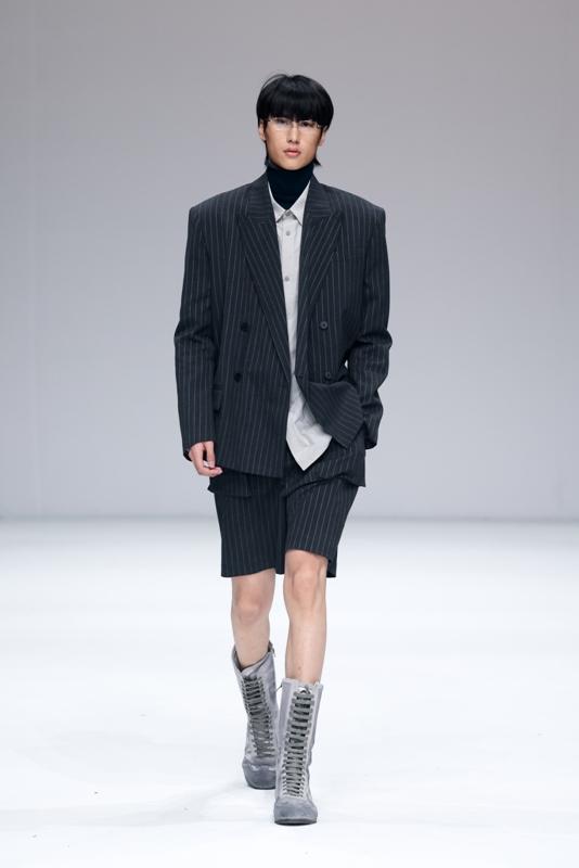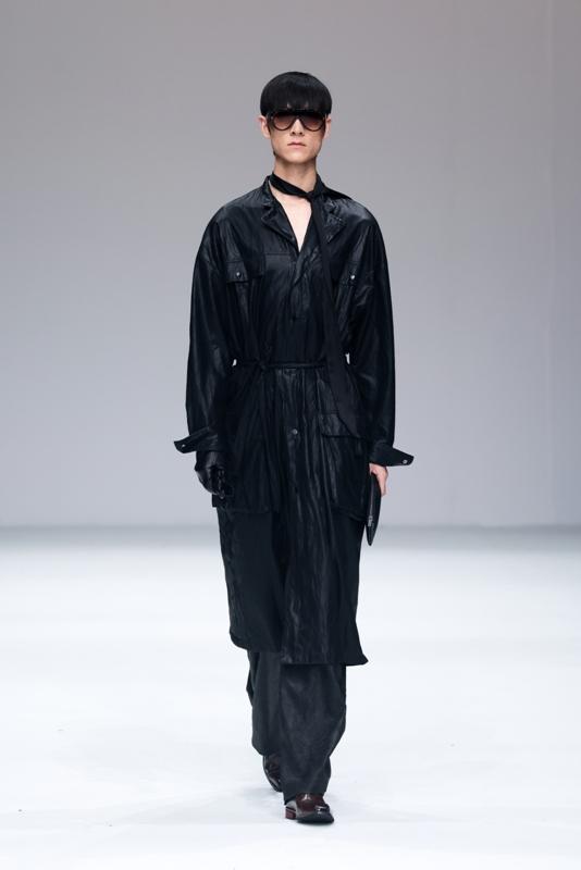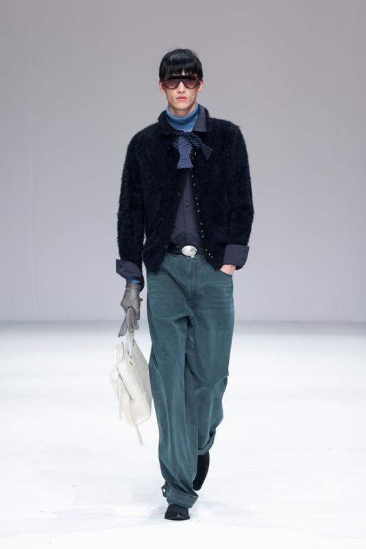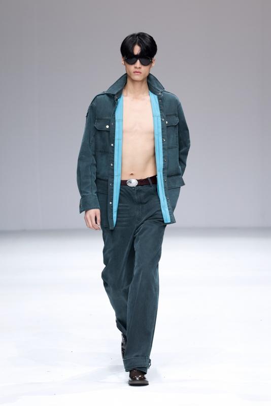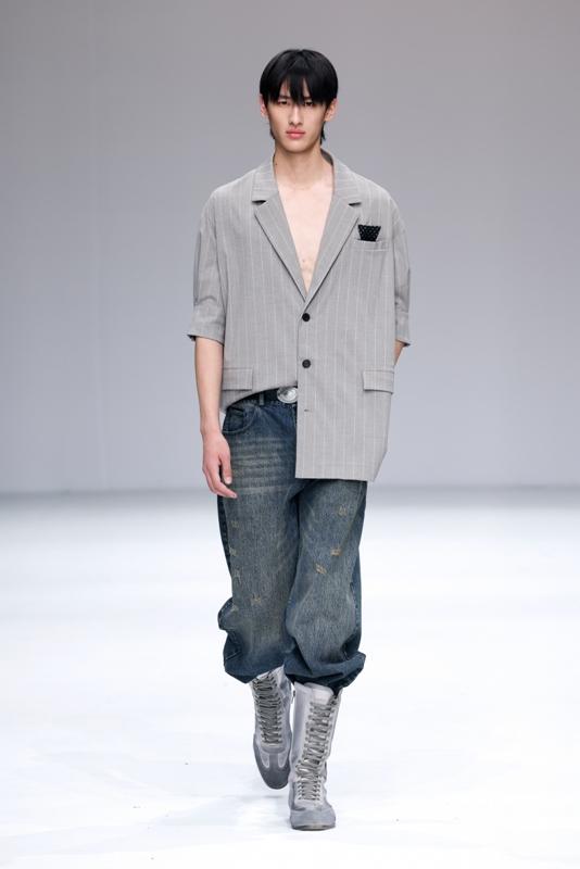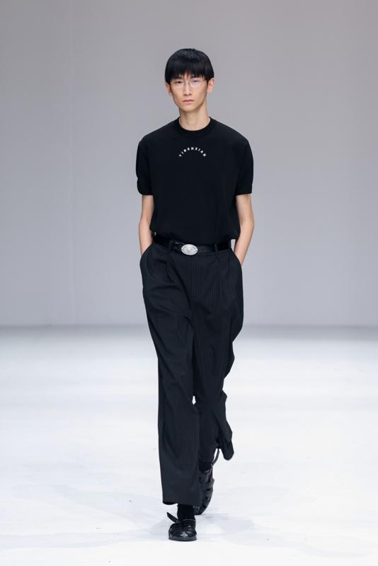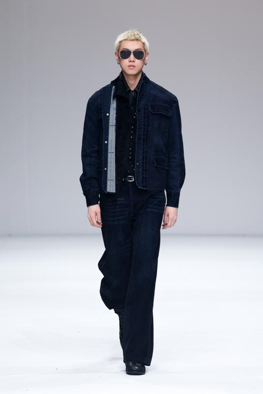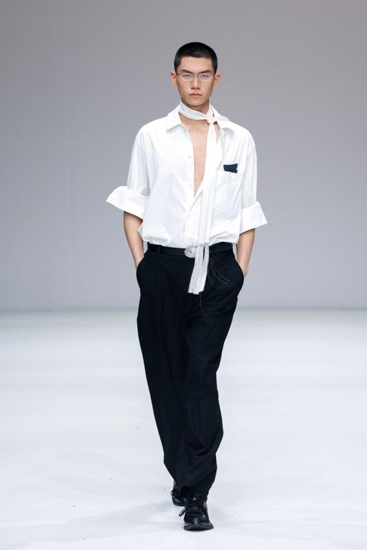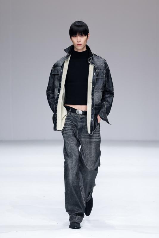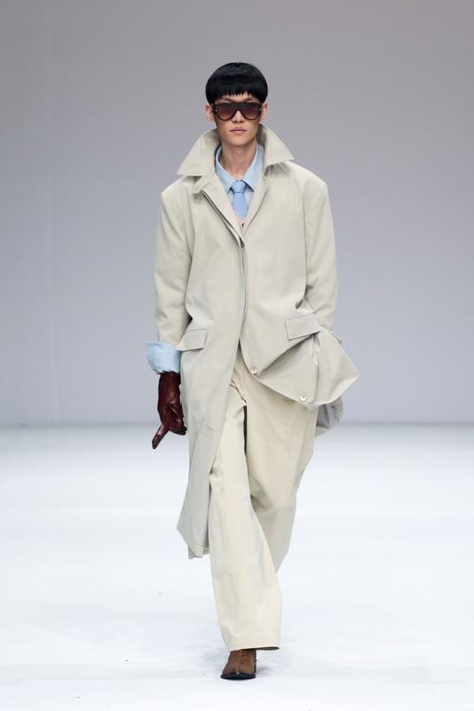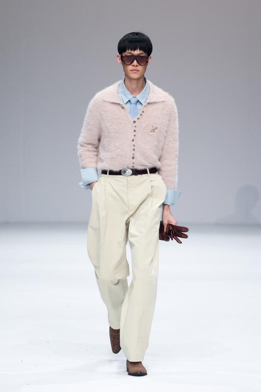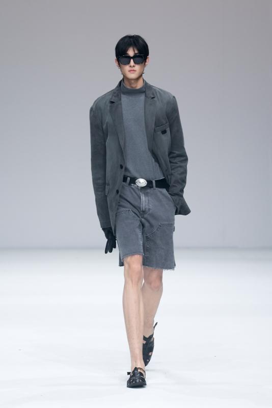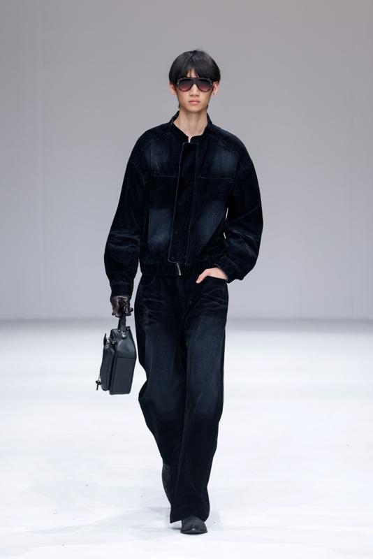 YIBENXIAN衣本线·赵诗玮2026春季中国国际时装周,以"混乱中的秩序"为主题带来了一场智性与街头感碰撞的男装盛宴。 本季秀场以黑白灰为主色调,用低饱和粉色、杏色温柔点缀,打造出高级又舒适的视觉体验。穿搭上充满矛盾又和谐的混搭美学:精致剪裁的西装套装搭配做旧牛仔单品,利落廓形的大衣内搭深V针织衫,宽松衬衫随意系上领带或领巾,金属配饰和皮质手套增添轻摇滚气质。 浅杏色全棉套装慵懒随性,浅粉色大衣温柔又有力量,水洗牛仔系列复古时髦,每一套都完美诠释了"无需声张的高级感",为新世代男性提供了丰富的日常穿搭灵感。