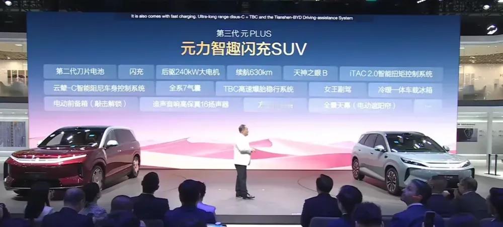 第三代元PLUS2026北京车展 正式首发亮相。新车大了不少,长宽高升至4665×1895×1675mm,轴距达2770mm,将于上半年上市。第三代元plus