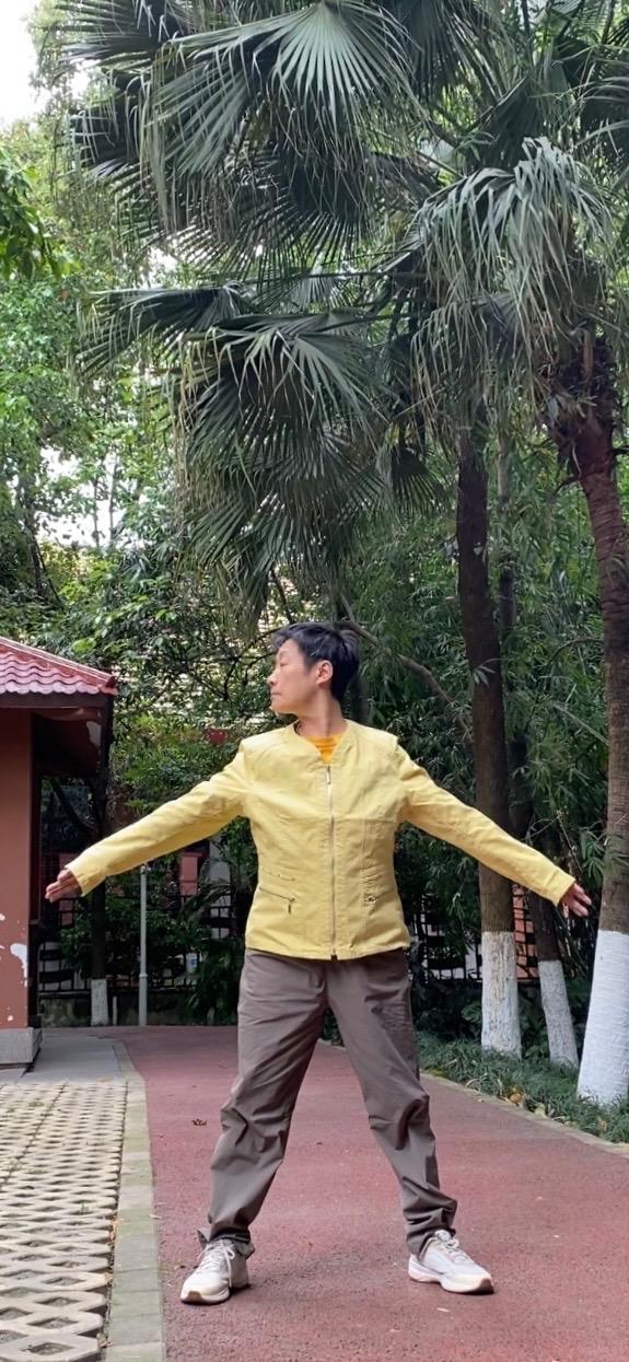 康复日记:阴天午后,再练八段锦,浅色系里的温柔舒展 2026年4月26日 星期日 阴天,午后微凉 今天午后,风里带着点湿润的凉意,天色淡淡的阴,我换上了康复期特意添置的亮黄色外套,浅色系的衣服衬得整个人都明亮起来。特意选了和过去不一样的风格,不再穿沉闷的黑灰,就想让病后的自己,从穿搭开始,慢慢换一种鲜活的状态。 还是没有敢用力,只轻柔地打了一遍八段锦。抬手托举、弓步推掌、俯身探足,每一个动作都做得极缓、极轻,不强行拉伸,不追求标准,只顺着身体的节奏舒展。抬手时胸腔依旧带着熟悉的束缚感,俯身时腰背也只能浅浅探到脚踝,但这套温柔的功法,还是让肩颈和腰背都慢慢松了下来,气血也跟着动作一点点暖了起来。 光线透过云层洒下柔和的光,落在黄色的外套上,和身后的绿树相映,整个人都被包裹在一片温柔的暖意里。虽然只是轻柔的一遍,没有发力、没有突破,但每一次抬手、每一次呼吸,都是在和身体温柔对话,也是在和过去的自己告别。 换了风格,也换了心境。从穿搭到锻炼,都在慢慢朝着更轻盈、更舒展的方向走。不急于求成,不强求完美,就这样一点点舒展,一点点变亮,就是康复路上最好的模样。 今日小记 • 康复练习:轻柔完成一遍八段锦,全程不发力、不强行拉伸 • 穿搭改变:换上亮黄色浅色系外套,告别沉闷黑白灰,调整状态 • 身体感受:肩颈腰背得到舒缓,气血渐暖,无不适 • 心情:被明亮的色彩和温柔的动作治愈,充满对未来的期待 康复日记 术后八段锦练习 浅色系穿搭改变 温柔康复 循序渐进养元气 和身体和解
