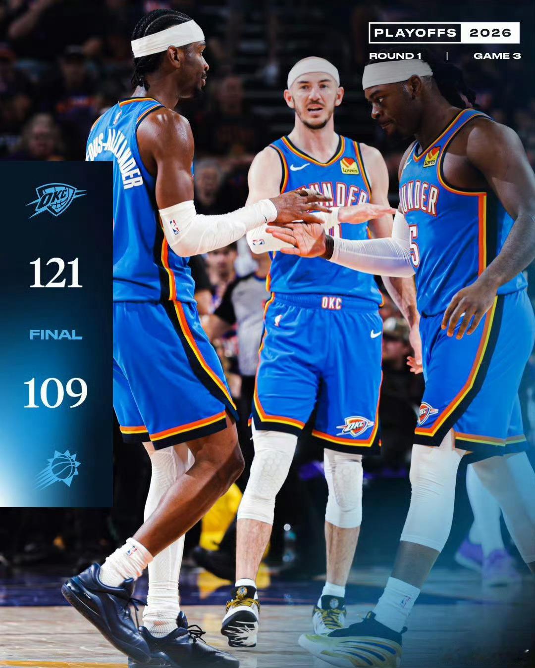 亚历山大18中15创队史纪录雷霆在NBA季后赛首轮G3客场以121-109击败太阳,系列赛大比分3-0领先,距离横扫晋级仅一步之遥。尽管缺少主力球员杰伦·威廉姆斯,但雷霆凭借团队深度(如麦凯恩、杰林等角色球员补位)和亚历山大的统治级发挥锁定胜局。