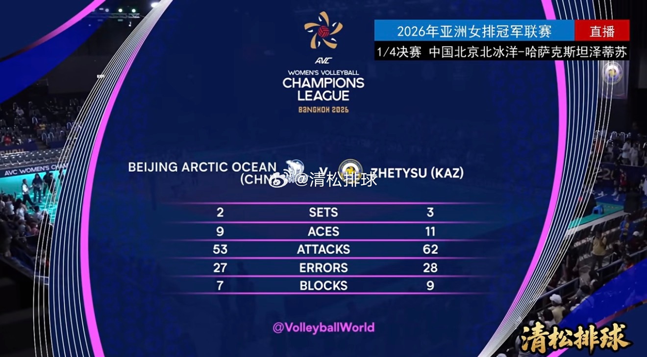 【赛后讨论】2026年亚洲女排冠军联赛1/4决赛,中国北京北冰洋女排2-3不敌卫冕冠军哈萨克斯坦泽蒂苏女排,你认为北京女排输在哪里?