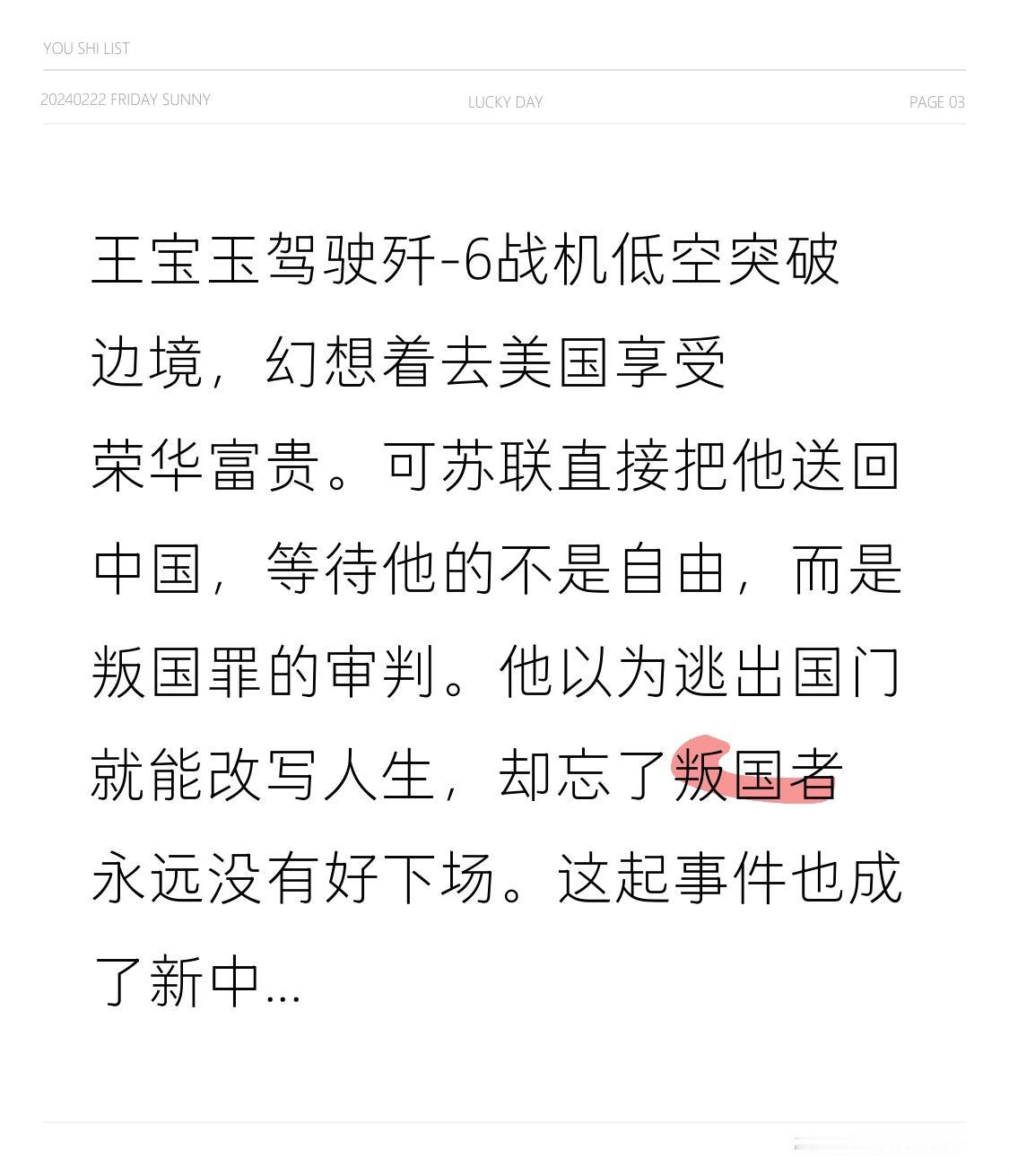 王宝玉驾驶歼-6战机低空突破边境,幻想着去美国享受荣华富贵。可苏联直接把他送回中国,等待他的不是自由,而是叛国罪的审判。 他以为逃出国门就能改写人生,却忘了叛国者永远没有好下场。这起事件也成了新中国最后一起飞行员叛逃案。 你觉得王宝玉当时是怎么想的?评论区说说。 历史事件 飞行员叛逃