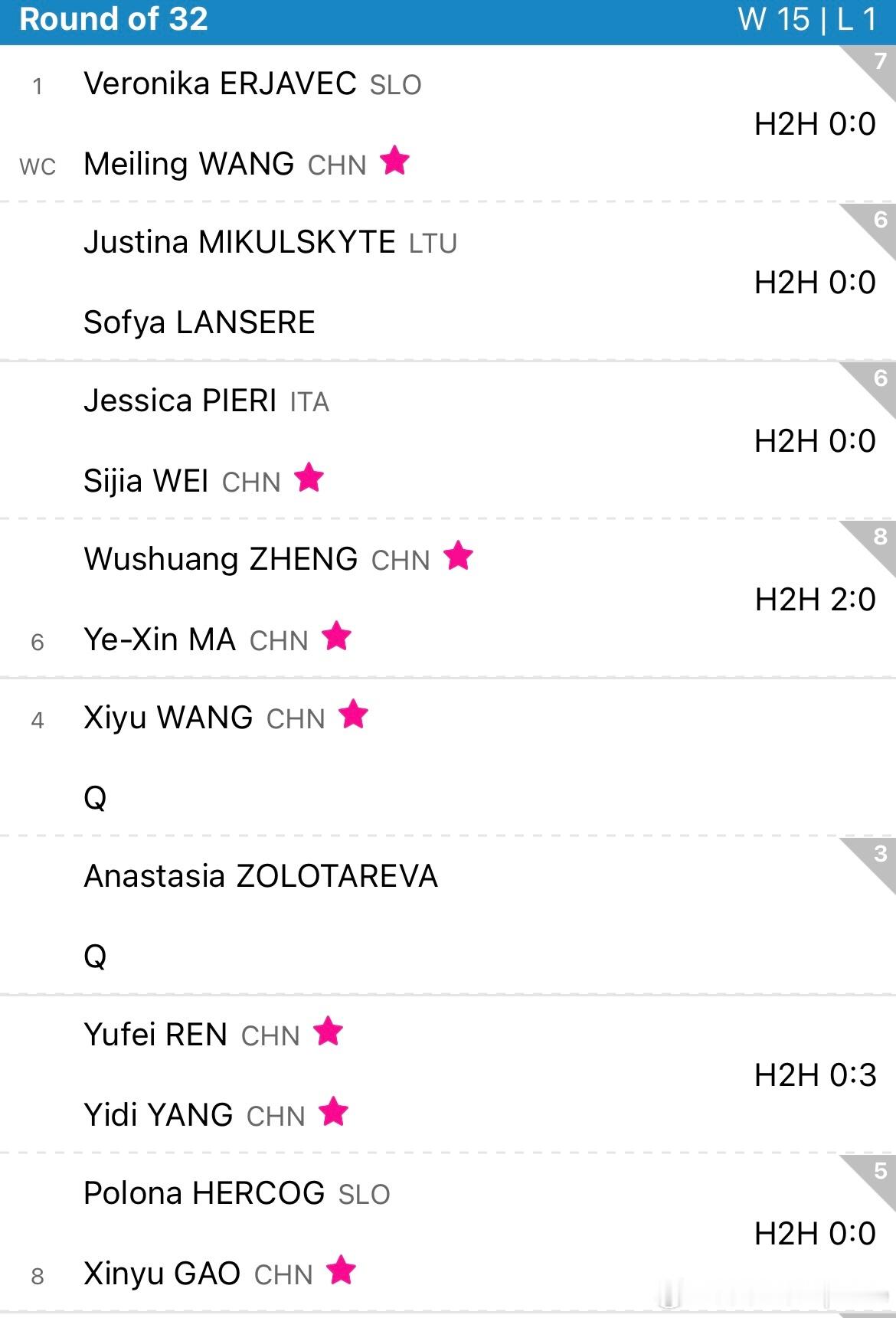 2/4区🇨🇳王曦雨vs Q🇨🇳任钰菲vs🇨🇳杨一迪🇨🇳高馨妤vs🇸🇮赫尔科格