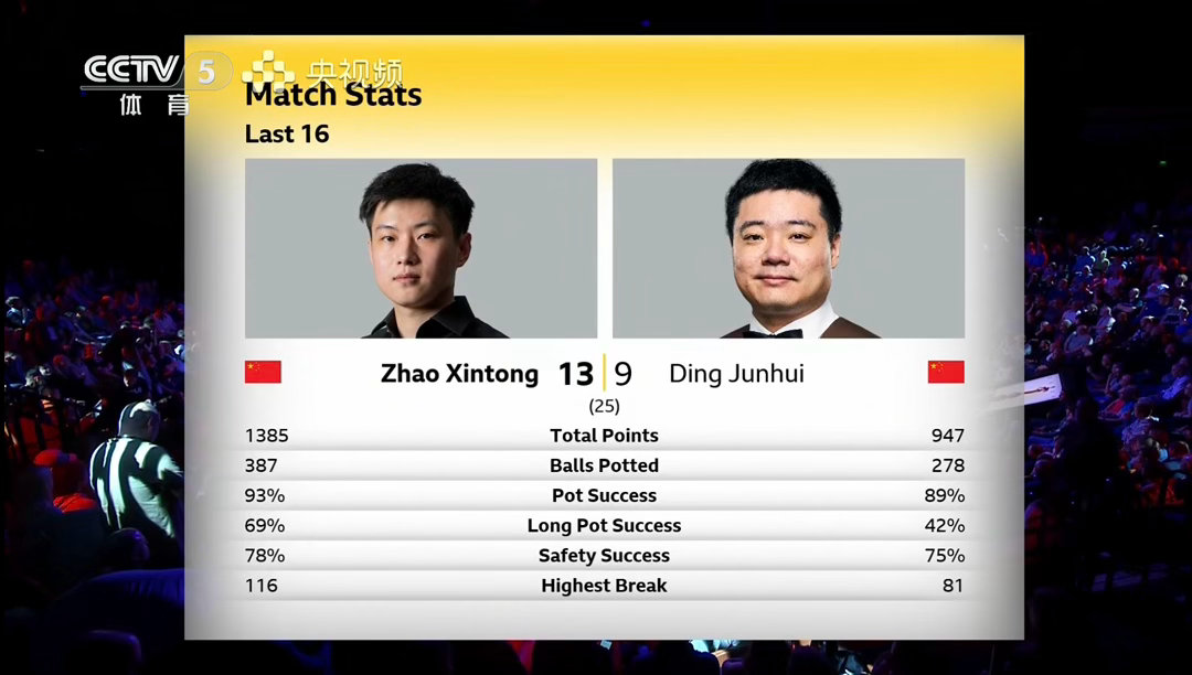 赵公子关键球太准了,丁主任尽力了,没太多机会!