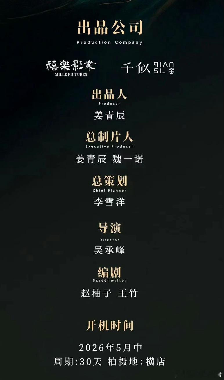 古装权谋剧《春山令》组讯改编自知乎盐言故事《月满春山楼》作者:十七今出品公司:禧樂影業、千似开机时间:2026年5月中旬拍摄周期:30天拍摄地:横店出品人:姜青辰总策划:李雪洋导演:吴承峰