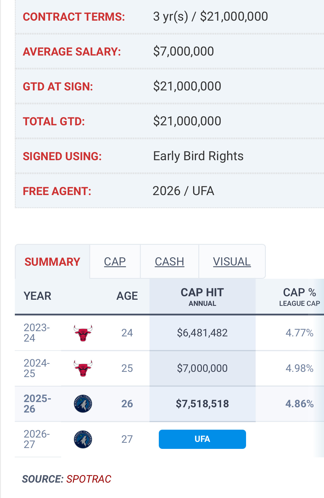 多孙穆2023年和公牛签下一份3年2100万合同,即将到期。