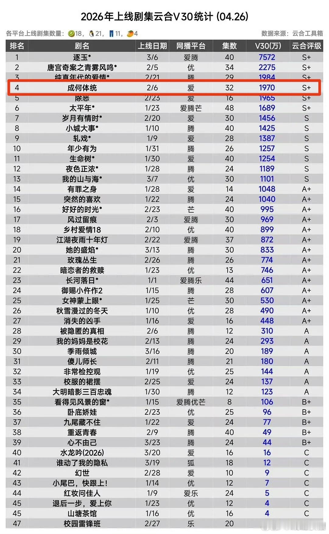 王楚然,丞磊 《成何体统》是目前为止2026爱奇艺独播第一!!