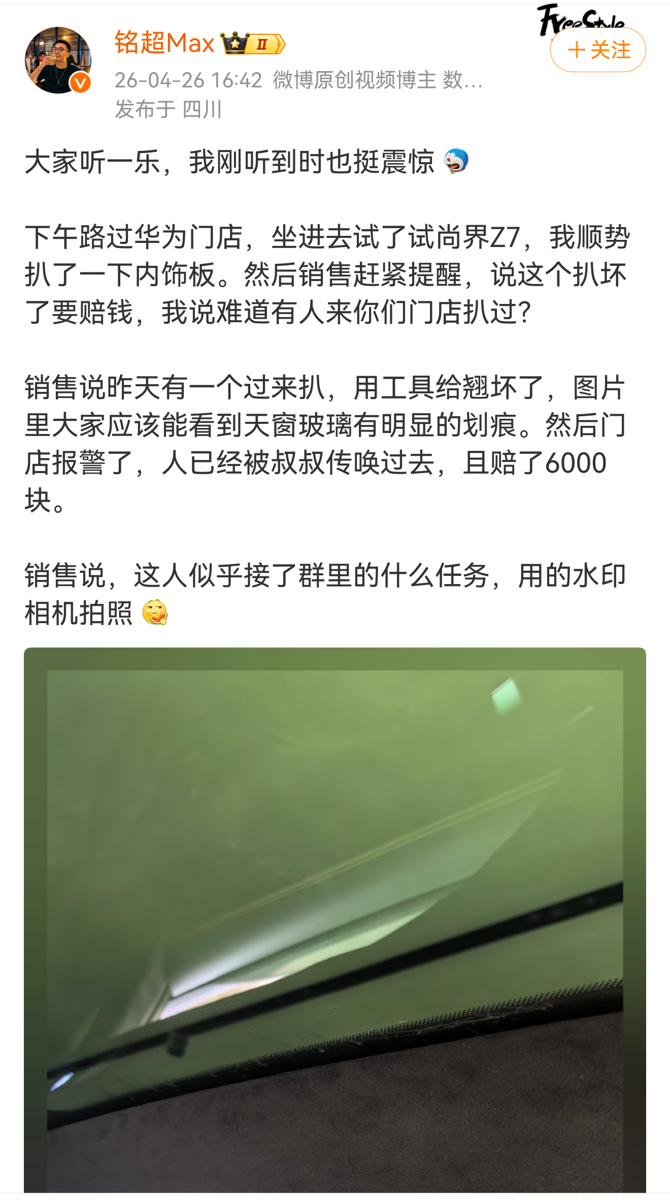 我可以明确的告诉你,真的有人去破坏尚界Z7,不是什么乱造谣,是很多门店已经反馈信息了,我周围很多朋友真的遇到了,不止一个人。