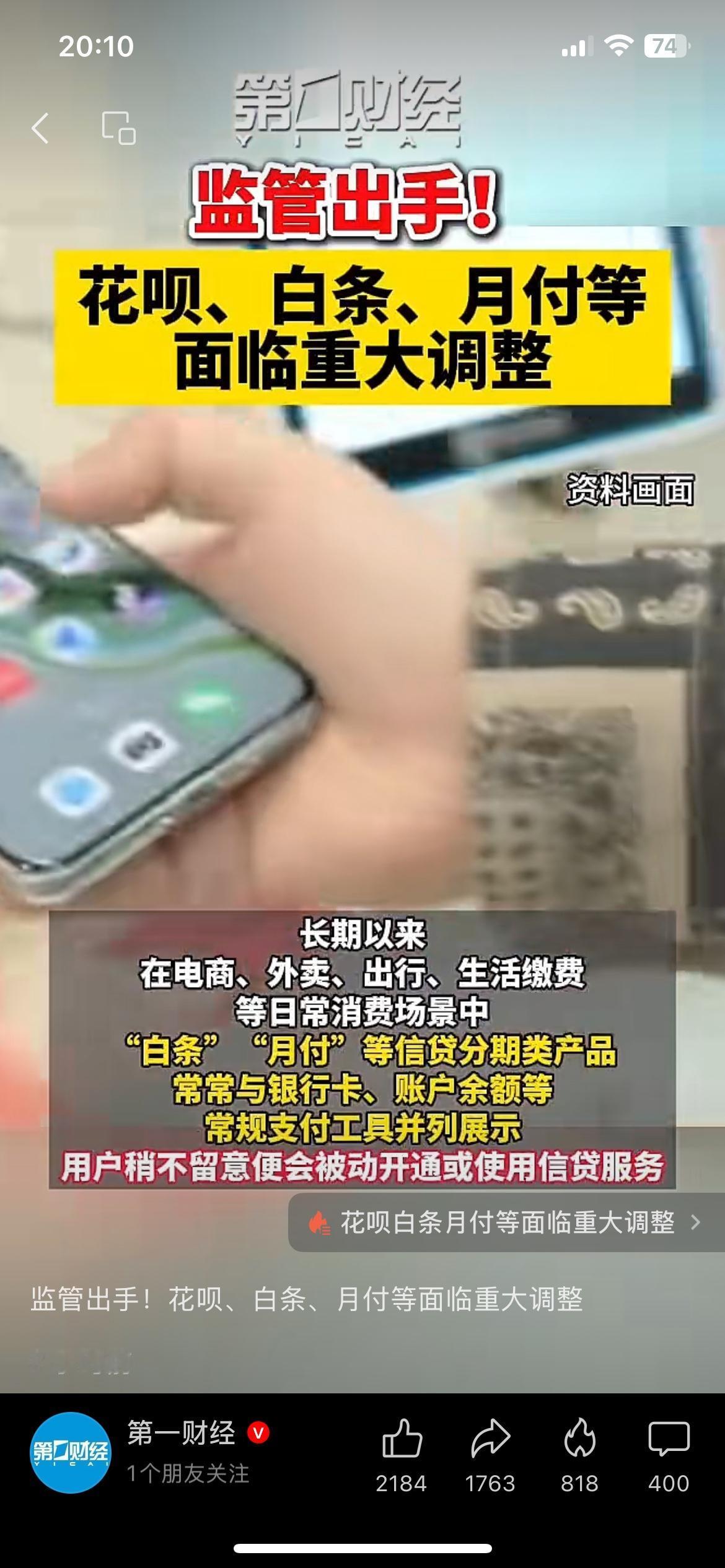 支付监管新规落地,花呗、白条这类信贷产品,不能再和常规支付方式混在一起展示了。 以后付款时,不会再稀里糊涂点成分期贷款,被动开通的情况也会减少。 这波调整,对冲动消费的年轻人来说,算是实打实的保护。 你有没有过被“默认分期”坑过的经历? 花呗白条 支付监管
