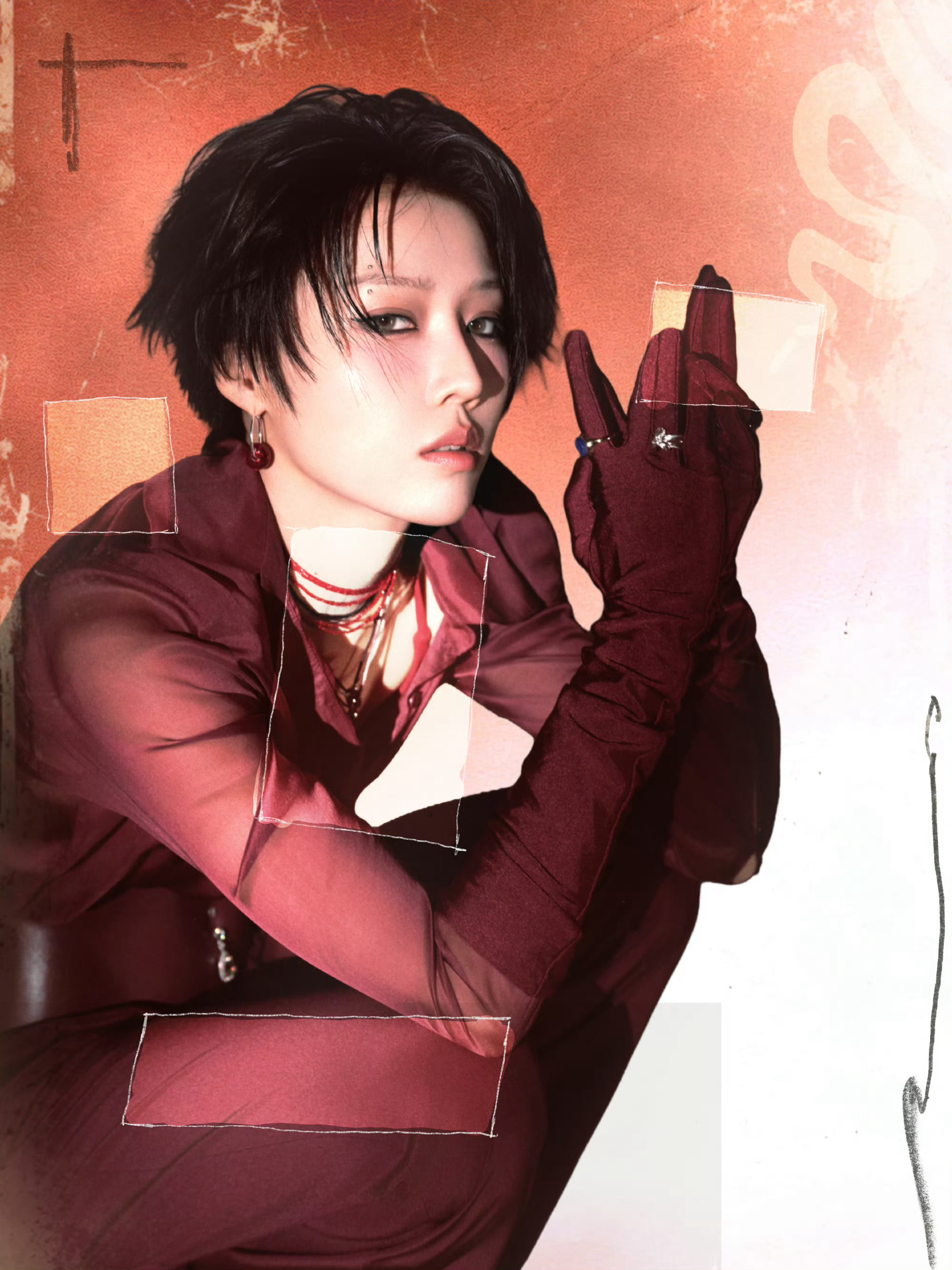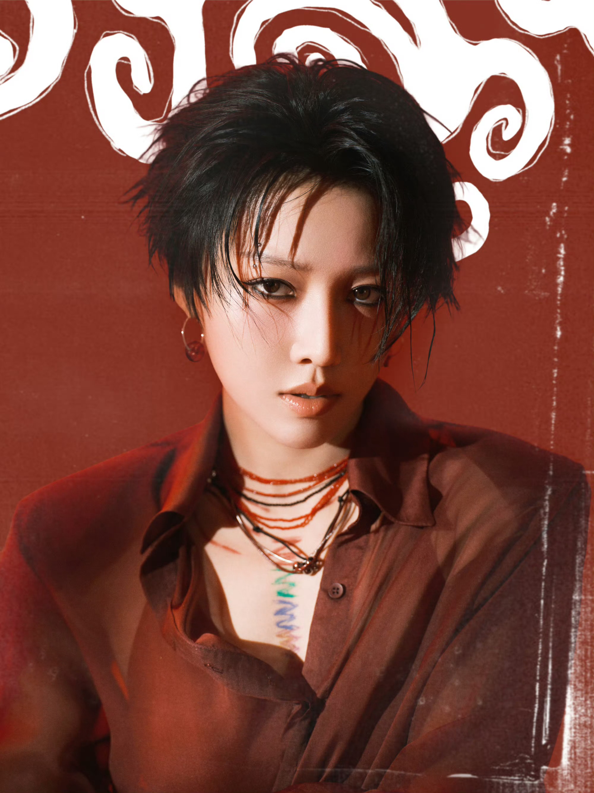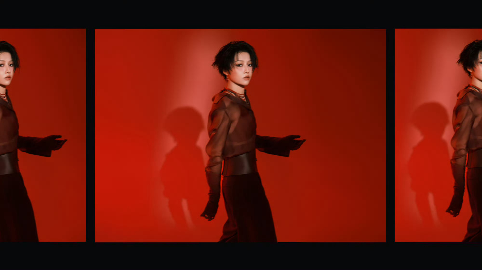 刘雨昕身穿J PHOENIX专属特别定制礼服搭配烟熏妆出席音乐节活动,酷飒红色女