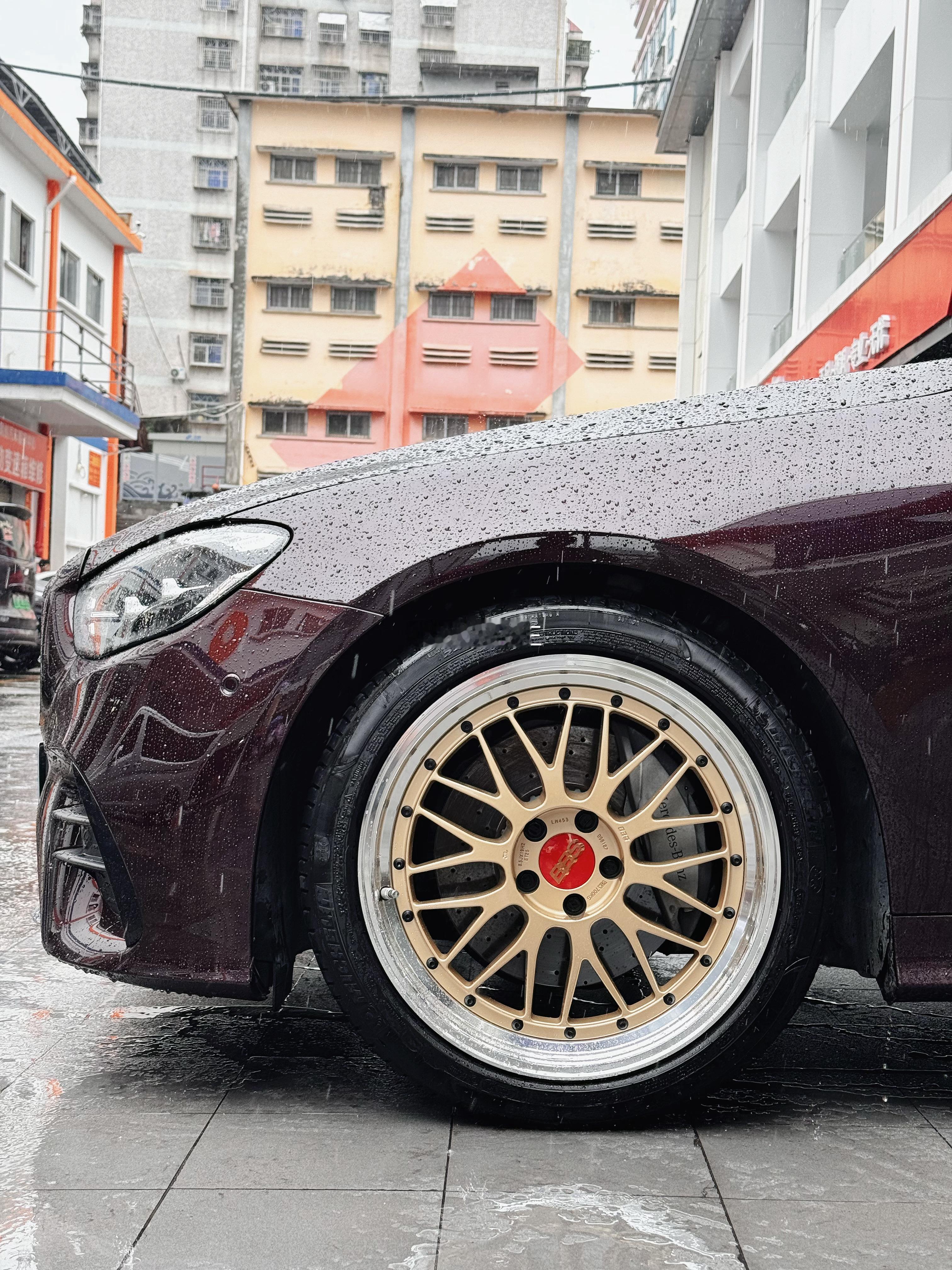 奔驰E260完工案例BBSLMGL金BKBD19寸意大利科吉动平衡!