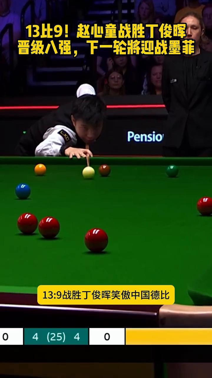 13比9!赵心童战胜丁俊晖晋级八强,下一轮将迎战墨菲。 恭喜赵心童晋级世锦赛八强,13:9战胜丁俊晖笑傲中国德比,从4:4打到9:7。同门对决左右为难,手心手背都是肉,二人相互成全,彼此敬畏。赛后两人微笑握手,尽显绅士风度。赵心童下一轮将对战墨菲,期待再创佳绩。
