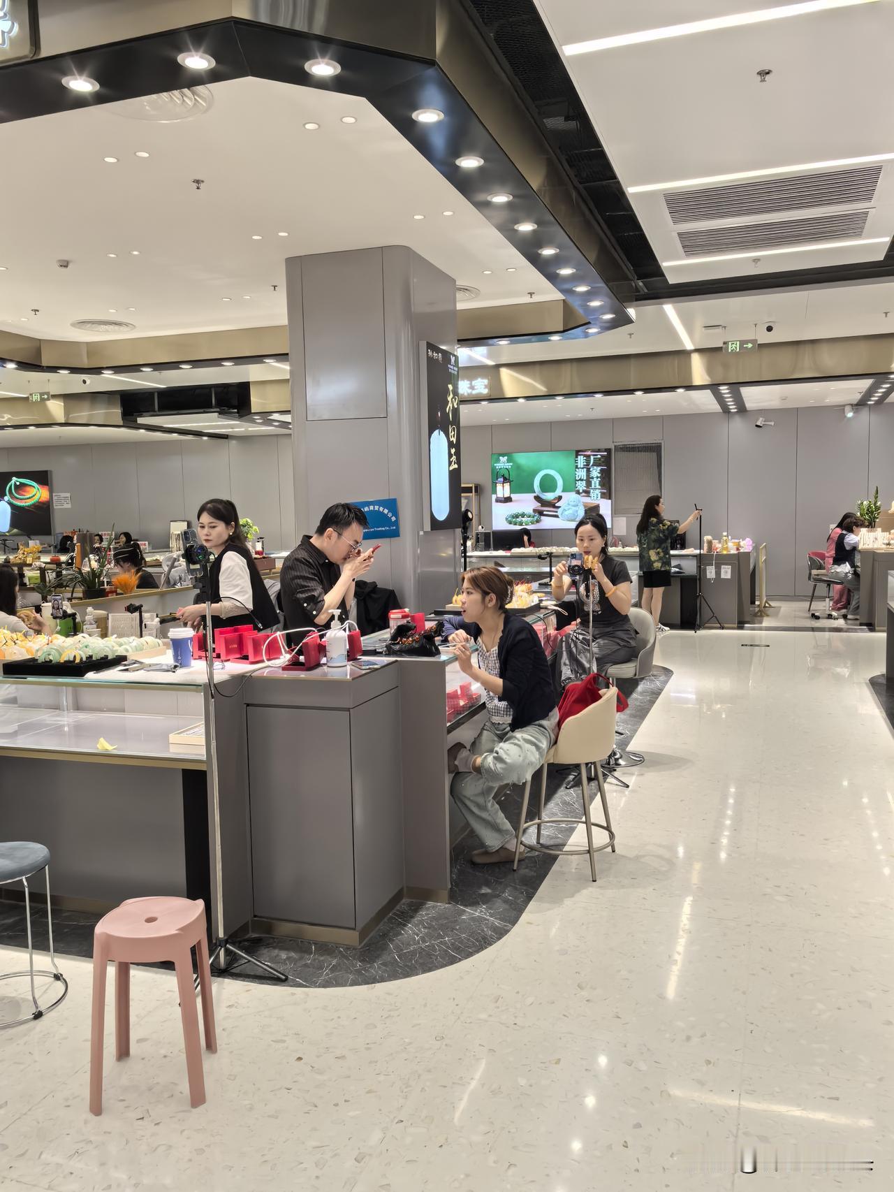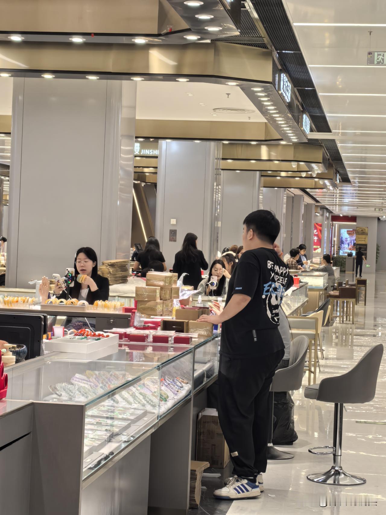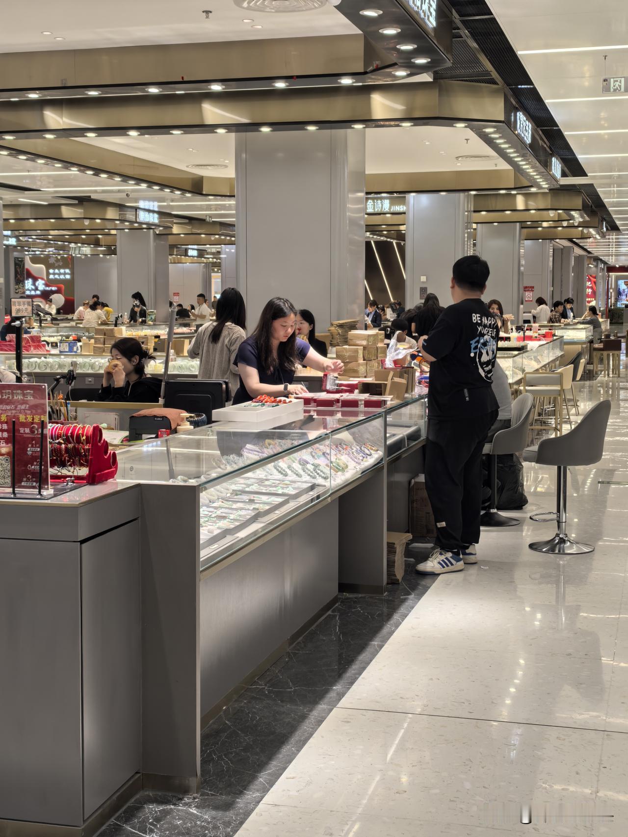 让人惊讶的是,几位每个店铺摊位前,都有好几个女孩,胳膊手腕上都戴着3到4个的玉器镯子,正对着手机,嘴上不停地说着什么。小编过去听了几句,才明白他们正在直播卖货。 看来,时代的变化在这些低层经营者的身上,表现得是这么明显。他们与时俱进,是生存的压力,也是奋勇向上的拼搏。