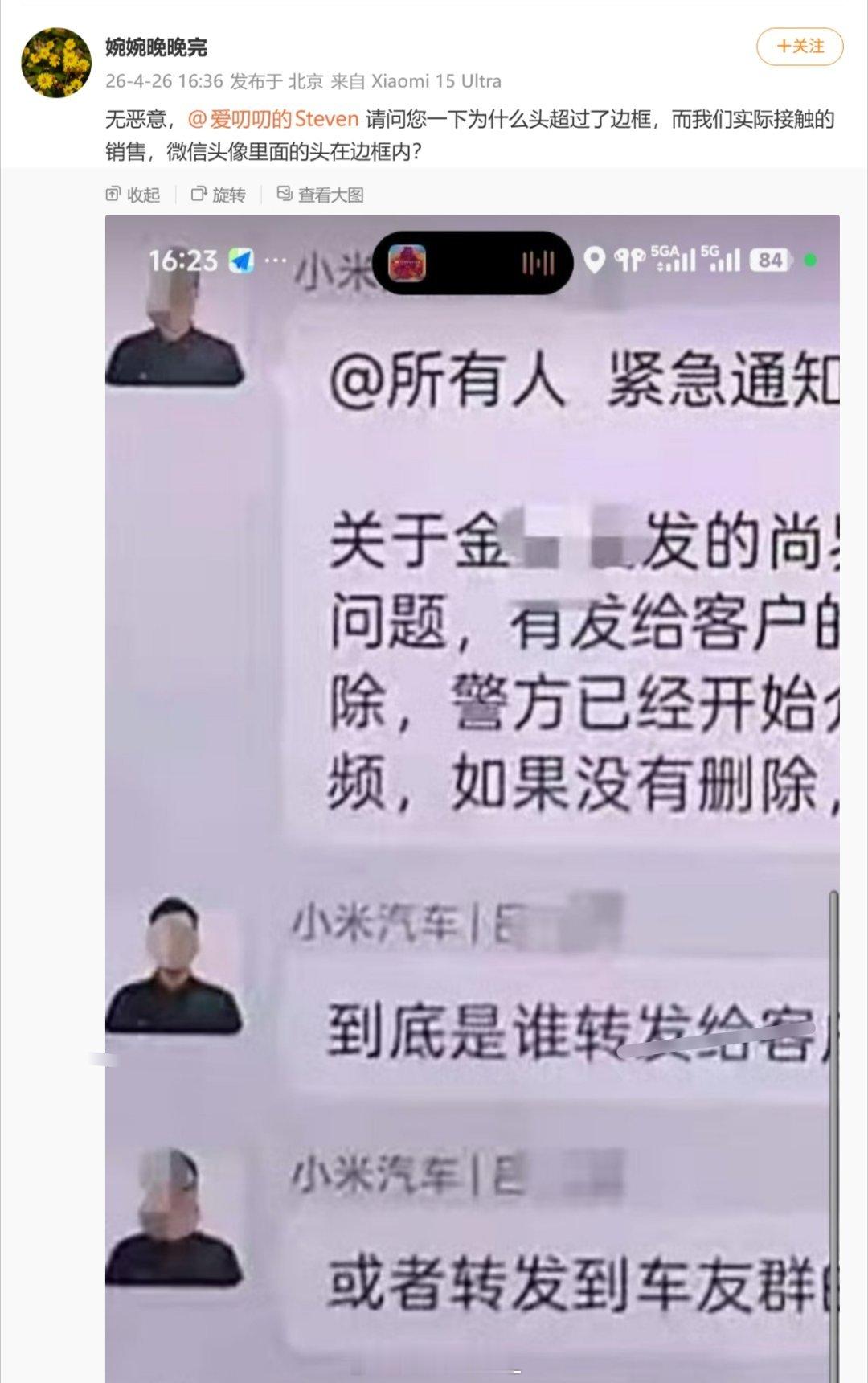 (图1)人物头像都在正常的框外了,明显的Ai痕迹,还在强行洗地~正经小米汽车员工工牌在右边,Ai图明显在左边。(图4)你在这提纯吗? 简直拿网友当狗遛了。突然想起两位故人‘正常人是不会探究这个事情的真实性’是吧? 赶紧取证,别装死,造谣、侮辱全套了。