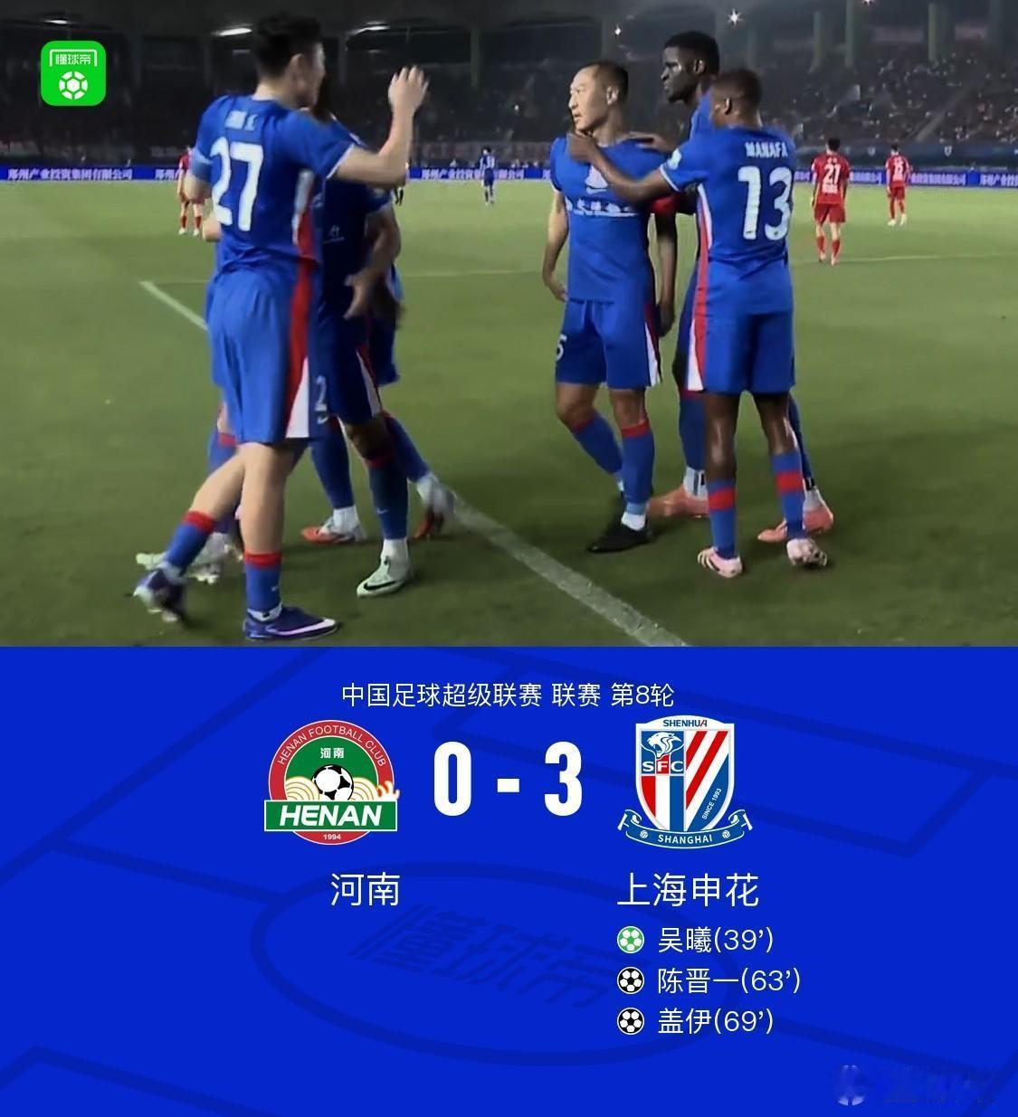 河南队0-3上海申花,看完比赛有三点切身感受。 1.河南队主场不愧是航海体育场,古斯塔沃、阿布拉罕频频打出高射炮,缺少纳萨里奥进攻真不行,不过河南队主场也是有说法的,对抗强度很大,真的主动上身体,硬扛了70分钟。 2.上海申花从倒数第一到正数第五,从负10分到正十分,一路北伐,足见这支球队的韧性,这也是申花拥有众多粉丝的原因。 3.下一场申花对阵蓉城,两支五连胜的球队,两支赛季不败的球队,注定是一场火星撞地球的比赛,虽然申花落后12分,但一场6分大战也足以改变争冠格局了。