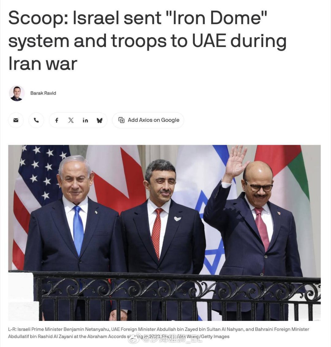 美国Axios披露称,在侵略伊朗战争的初期,以色列秘密向阿联酋派遣了军队并部署“铁穹”防空系统。