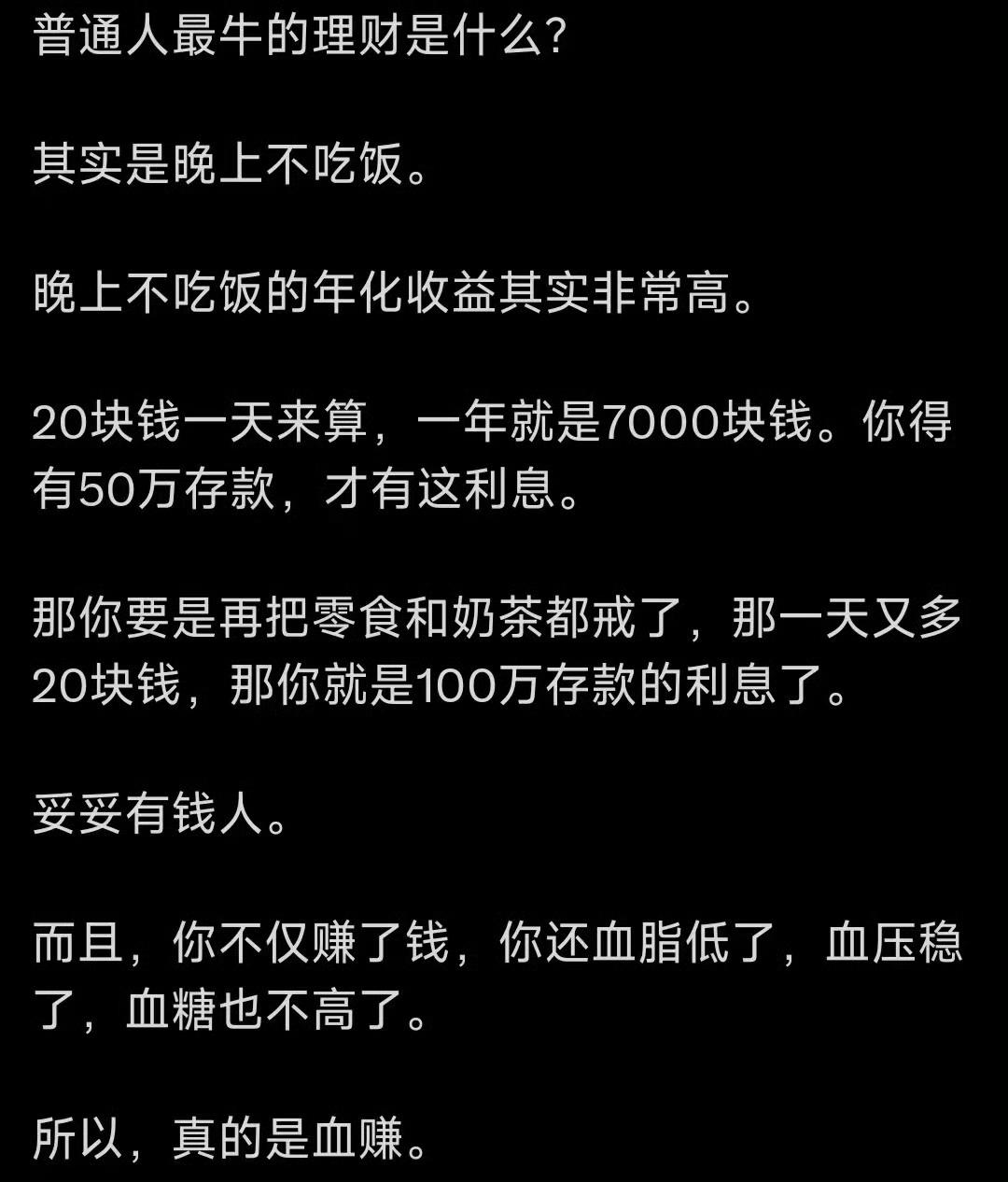 学到了,原来晚上不吃饭是普通人最牛的理财方式啊!