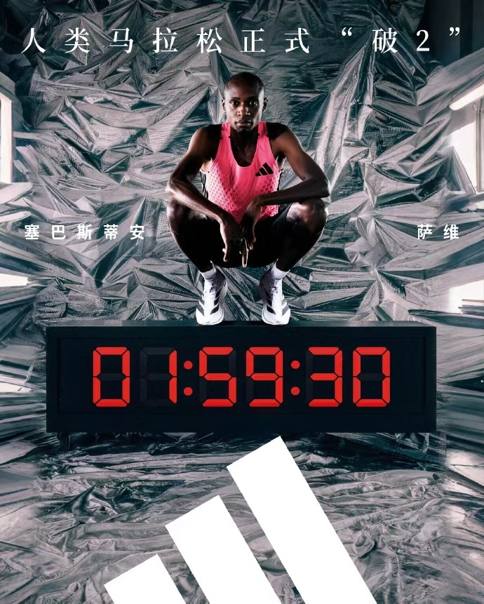 阿迪达斯助人类马拉松首次破二 当人类马拉松正式比赛破二的历史时刻定格在伦敦赛道,背后无可替代的核心推动者,正是阿迪达斯。