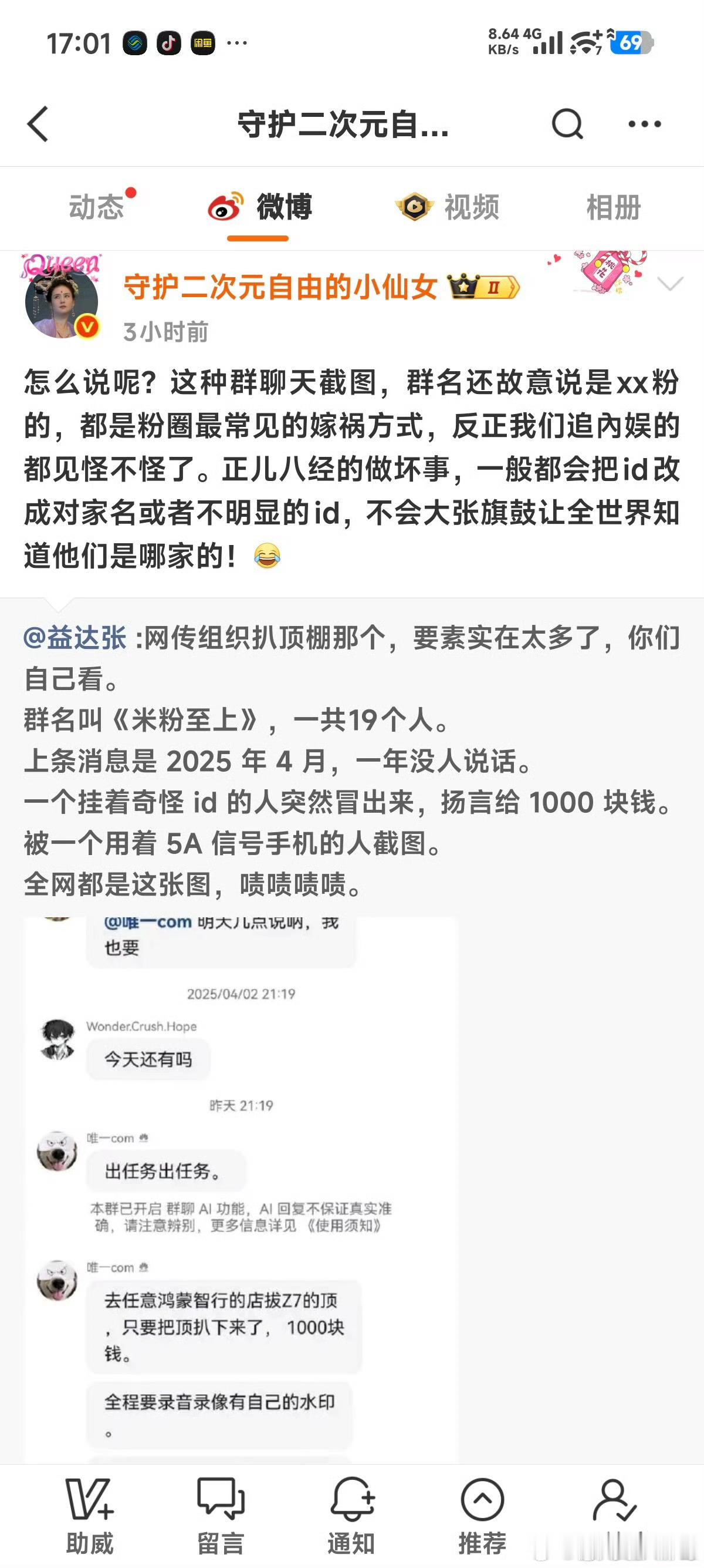 一个米粉至上的群一共才19人,截图的还是5A级信号就像饭圈那边说的一样,都老掉牙的招数了这些人无法下沉年轻人市场不是没有原因的,好不容易破圈了,结果还在那用忽悠老登的招数年轻人可没那么好忽悠不会因为人家是饭圈的就没思考能力了饭圈也好,车圈也好,本质上都是喜欢一个人或者一个品牌但是脑子不会变因为圈子而改变