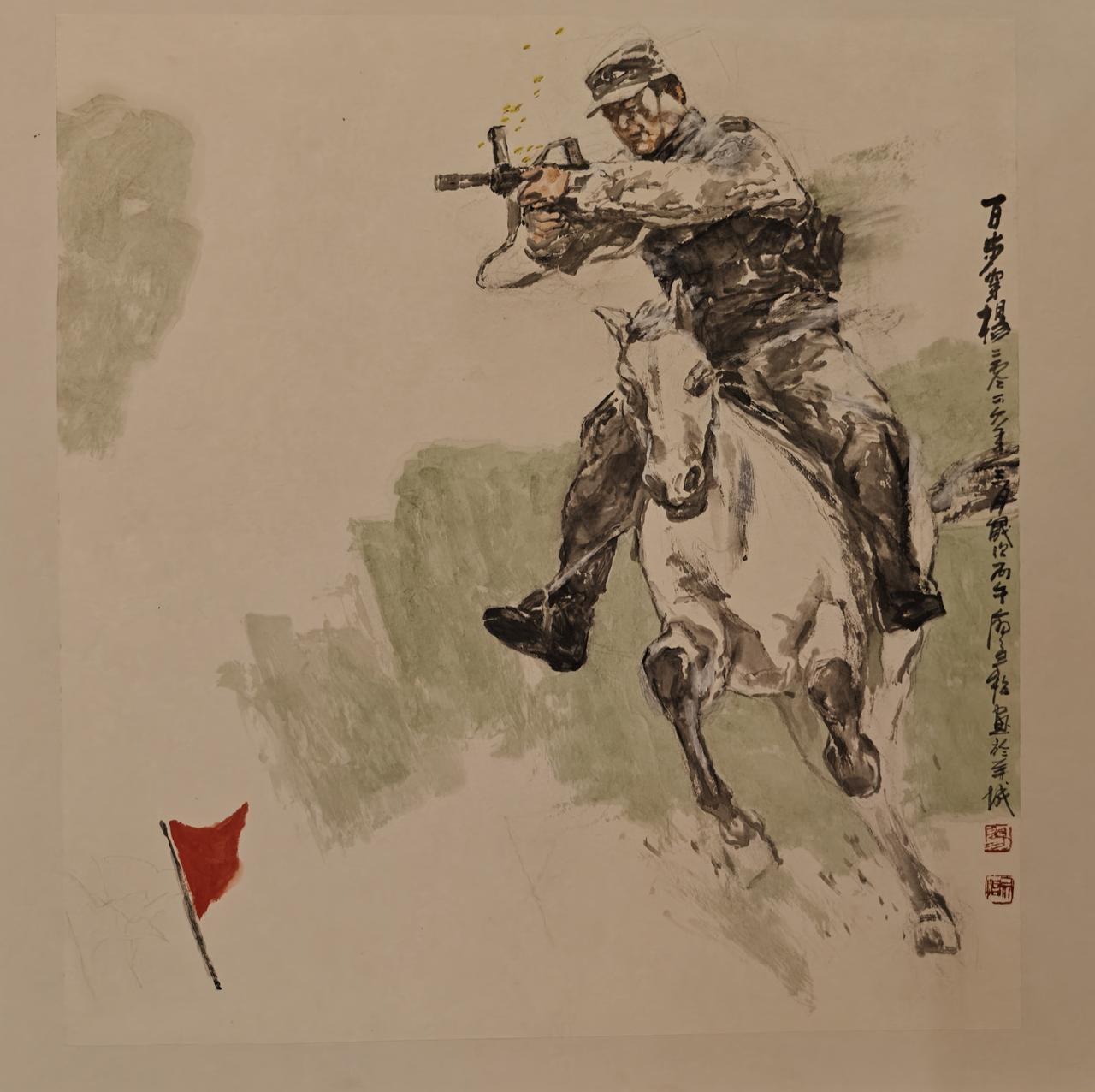 “骏行万象” 为题,既是对岭南数百年画马传统的当代回响,也是对 “图像时代如何创作” 这一时代命题的探索。岭南画马传统深厚,从明末清初张穆的 “马相在骨”,到岭南画派高剑父、关山月等将马融入现实题材,再到当代艺术家的多元创新,始终贯穿着 “以心观物、以笔写心” 的核心题旨。