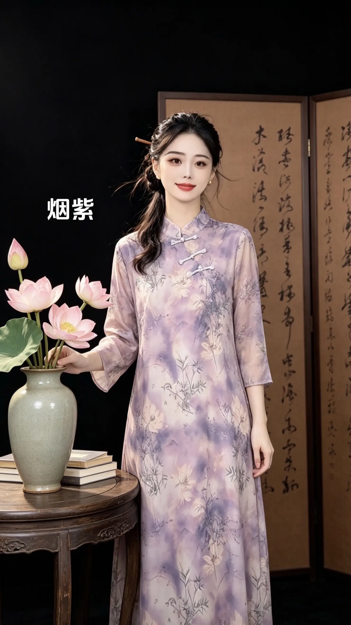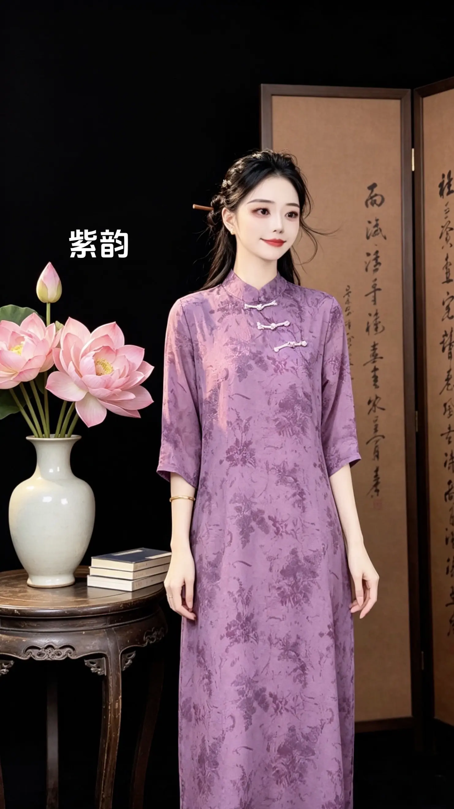 温柔紫调旗袍,优雅气质女神🌸✨
