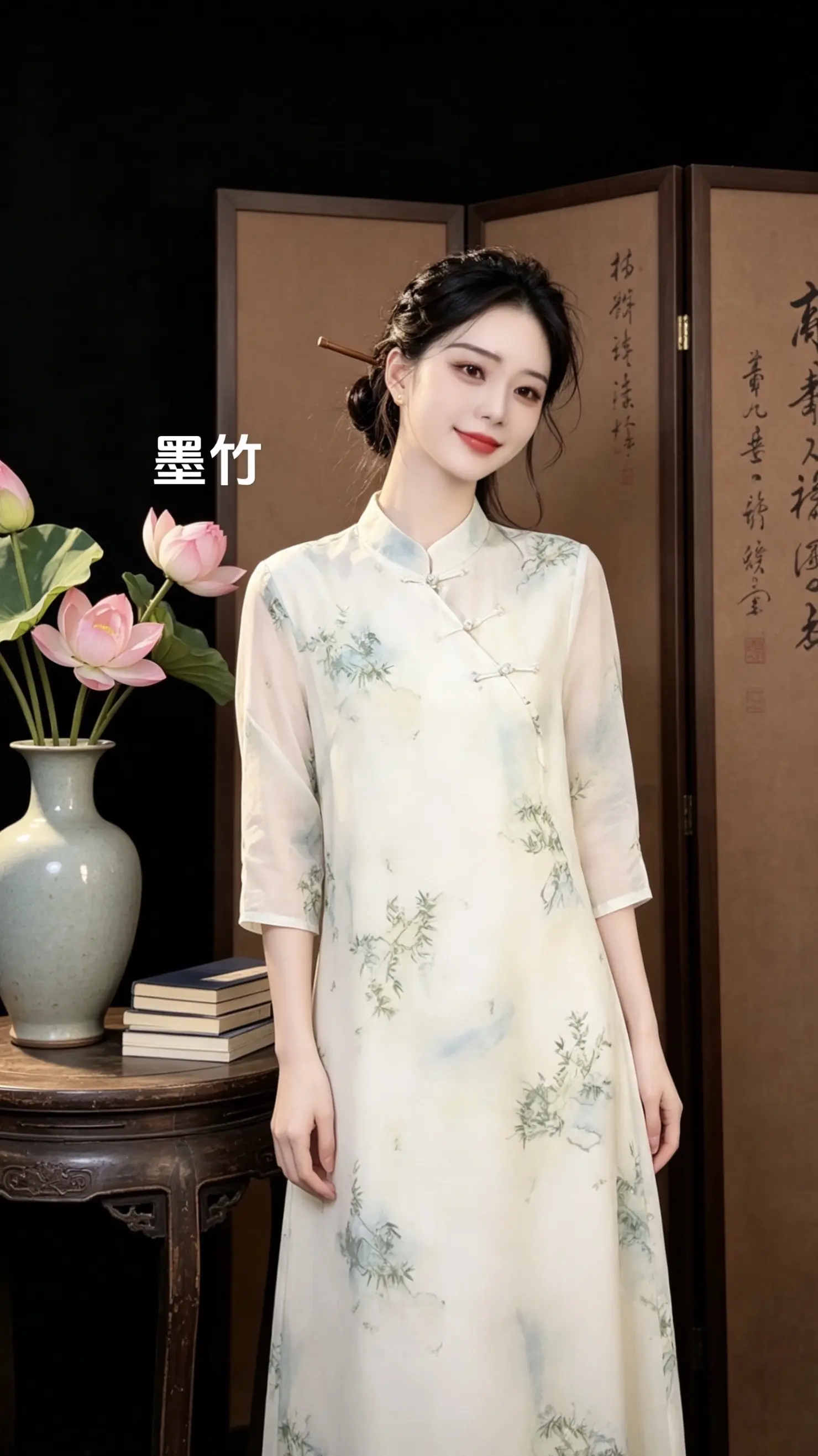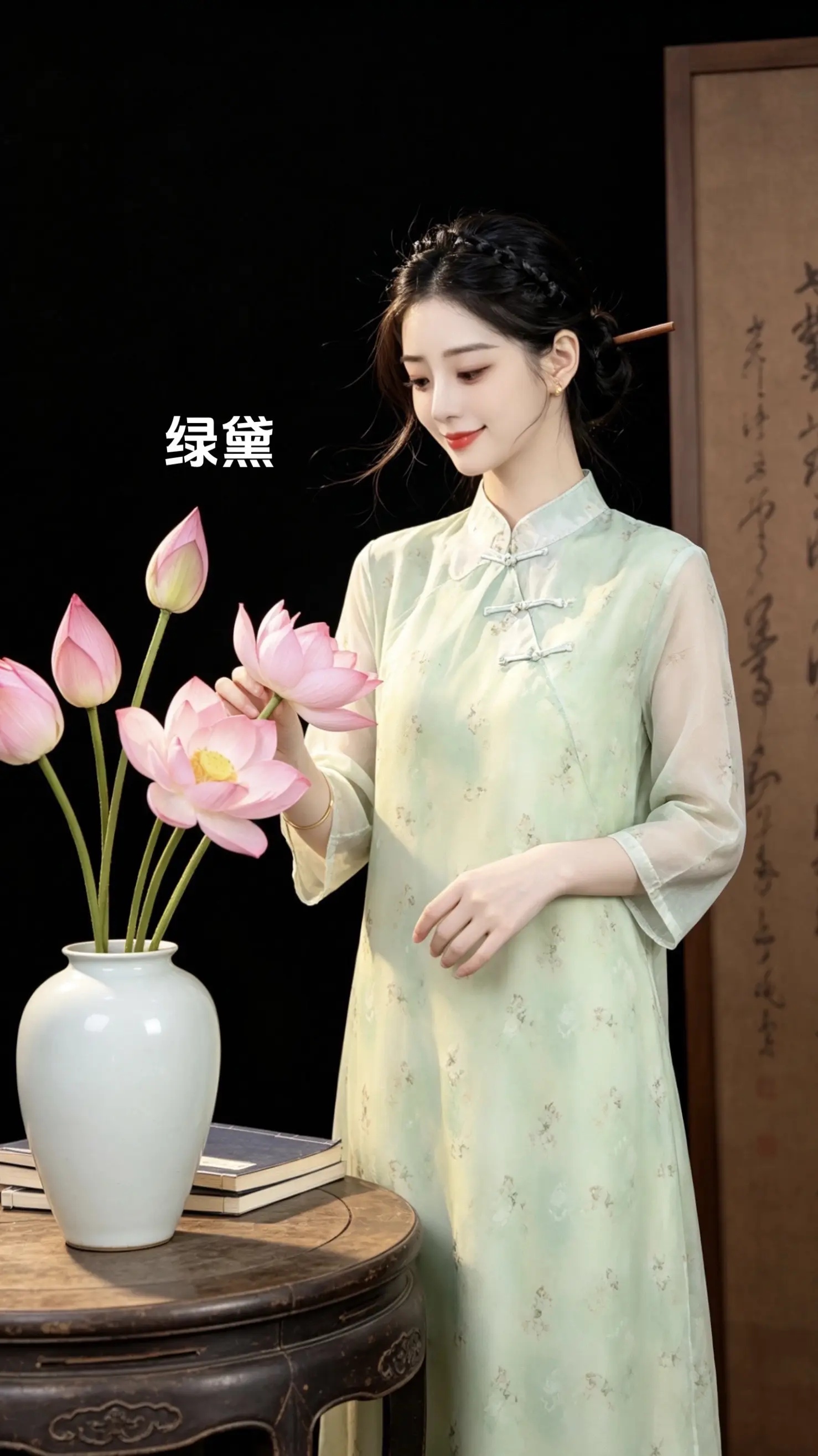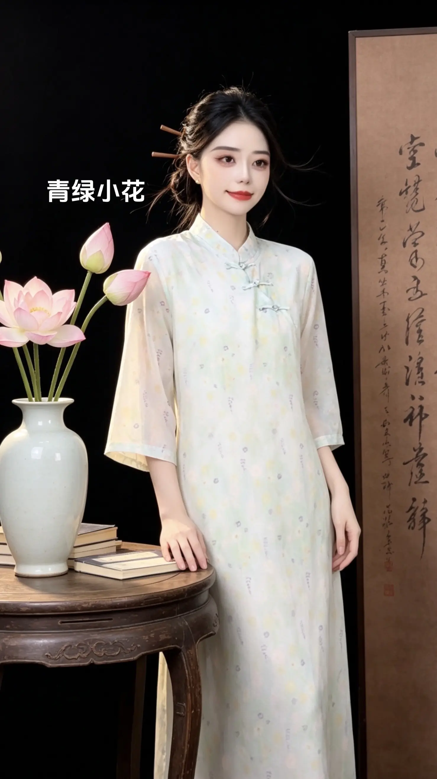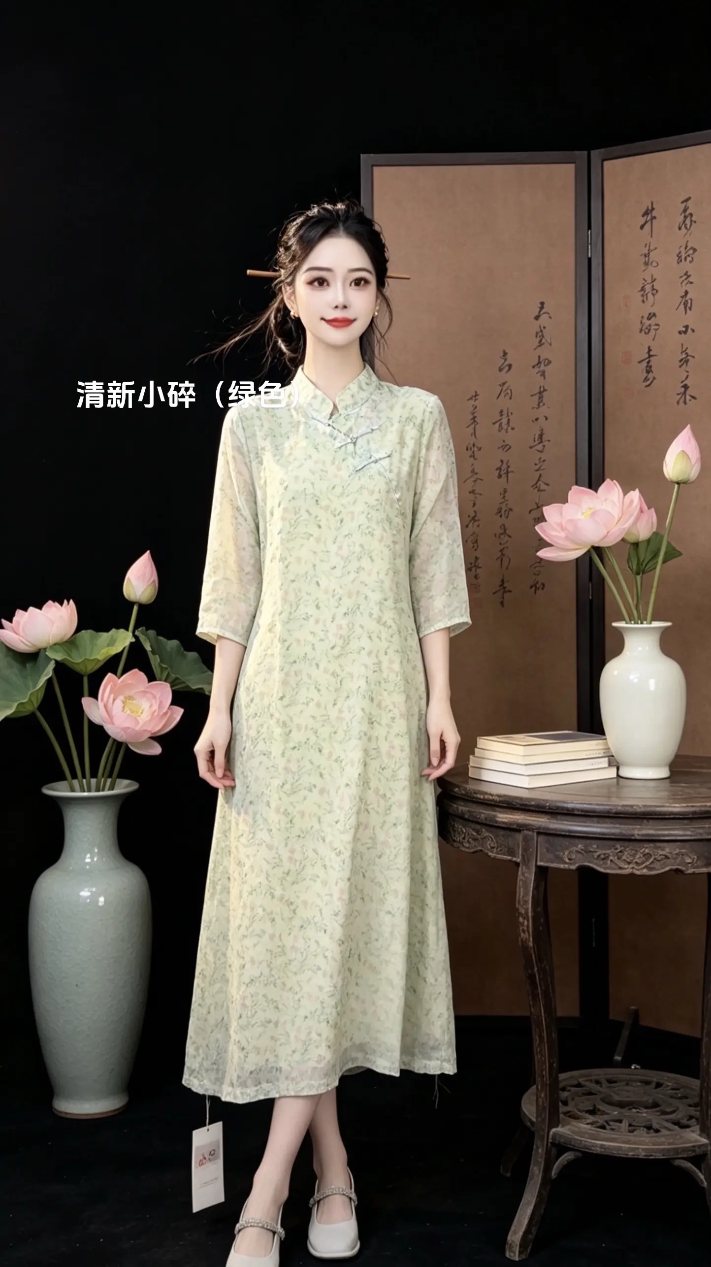 优雅旗袍,绿意盎然,清新自然,尽显东方韵味。
