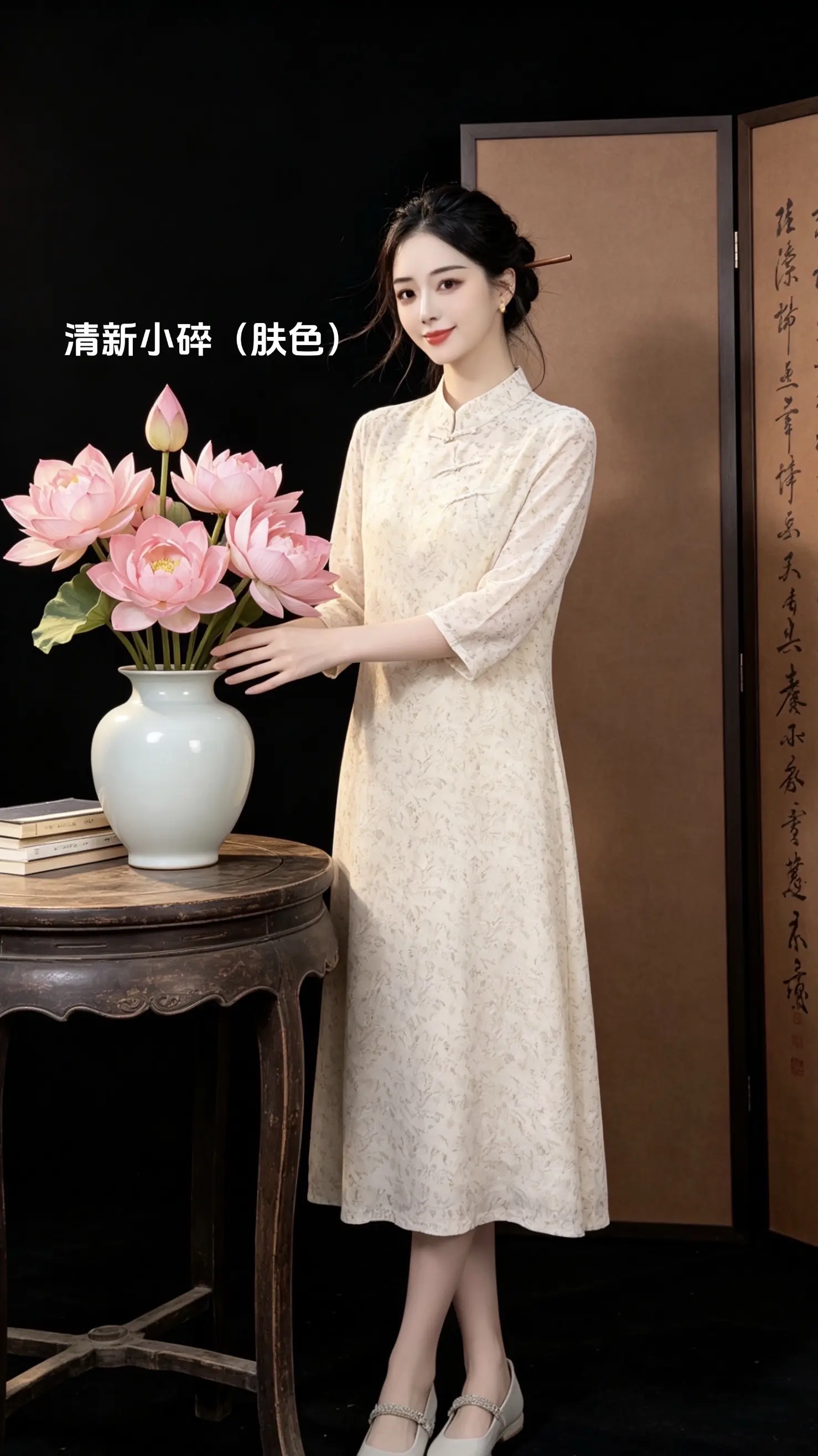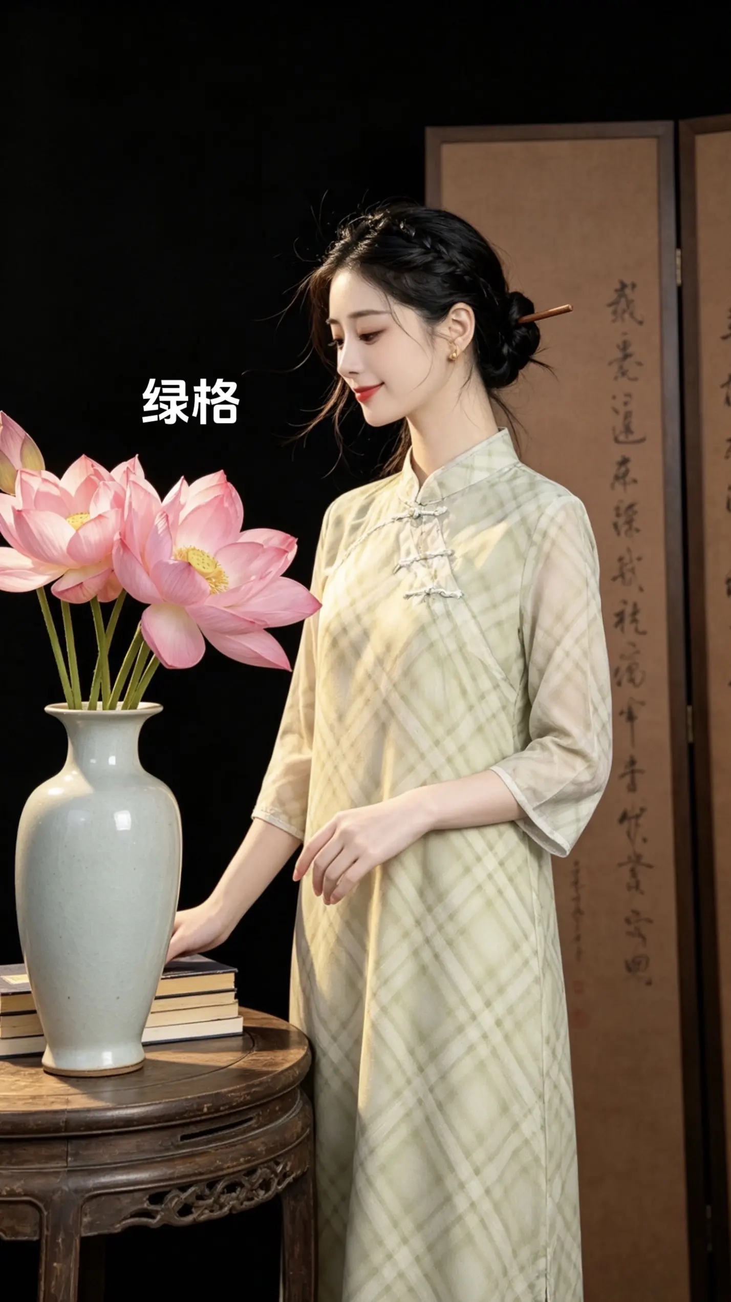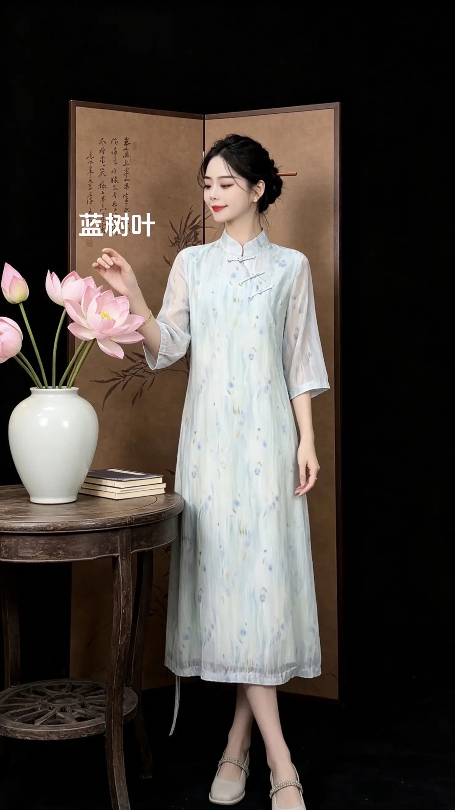 优雅旗袍,绿意盎然,清新自然,尽显东方韵味。